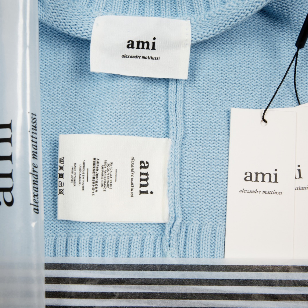Pull Ami Paris Bleu Cœur Blanc – Élégance et Confort