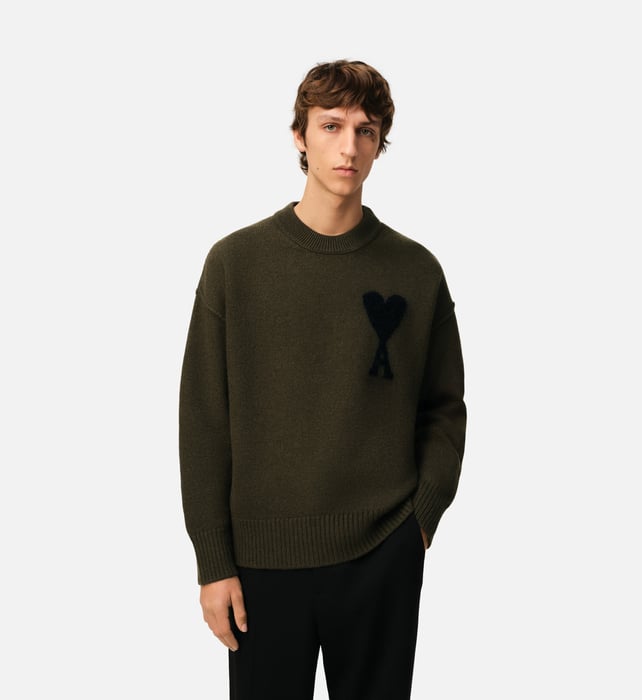 Pull Ami Kaki Cœur Noir – Élégance et Sobriété Naturelle