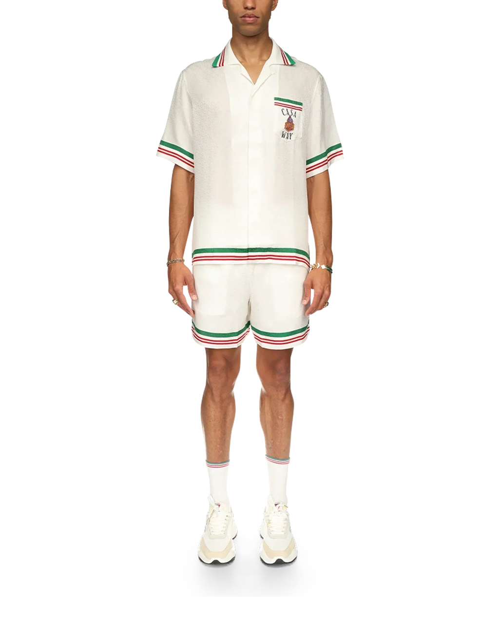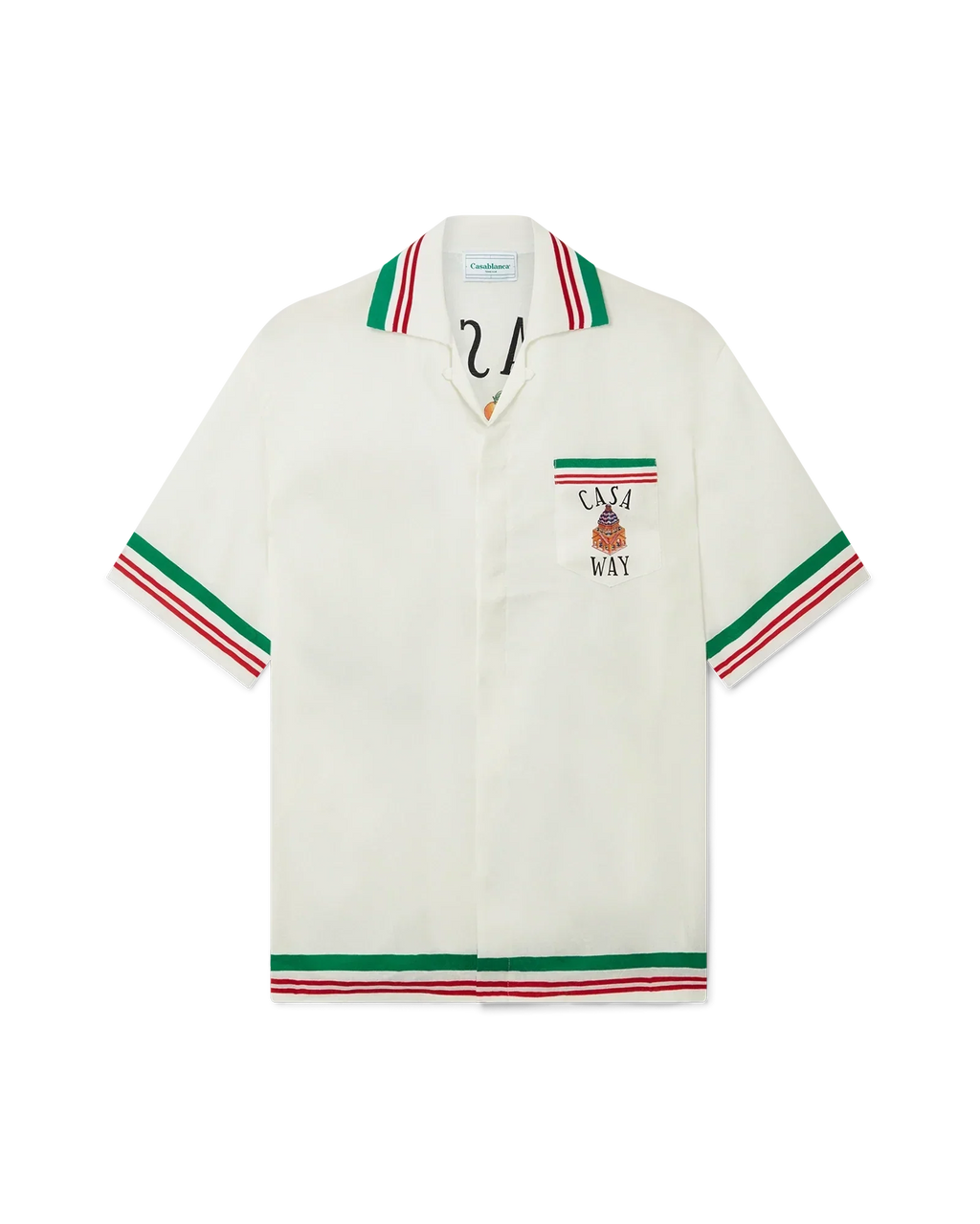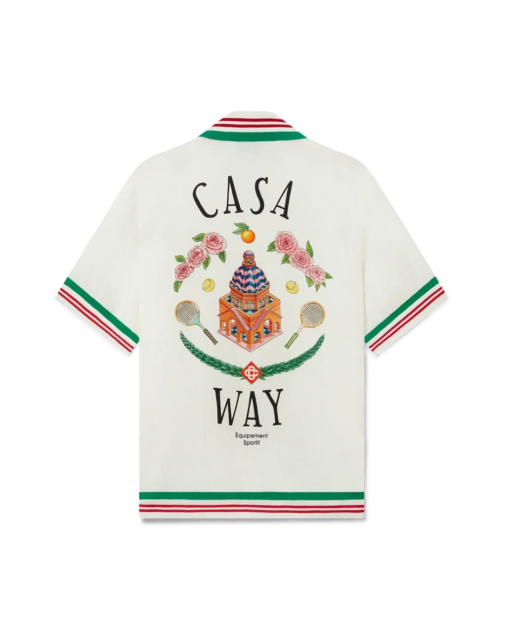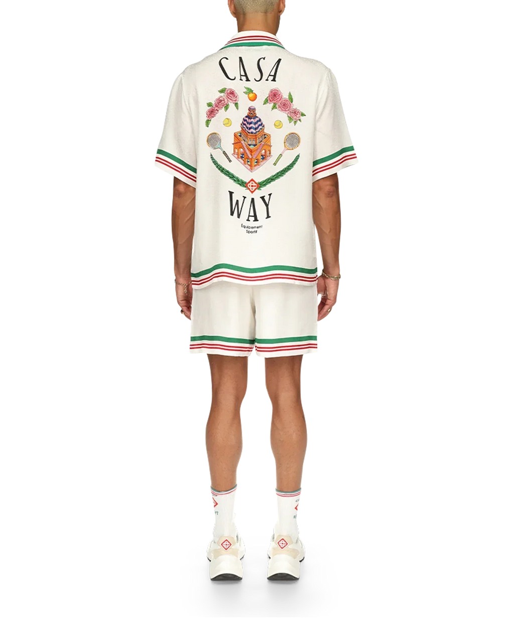 The Casa Way knitted collar silk shirt features the house's signature artwork with screen-printed illustrations of sporting equipment and floral details reinterpreted for this season. Crafted from our signature monogram printed silk fabric with a contrast cotton collar designed for a classic fit.