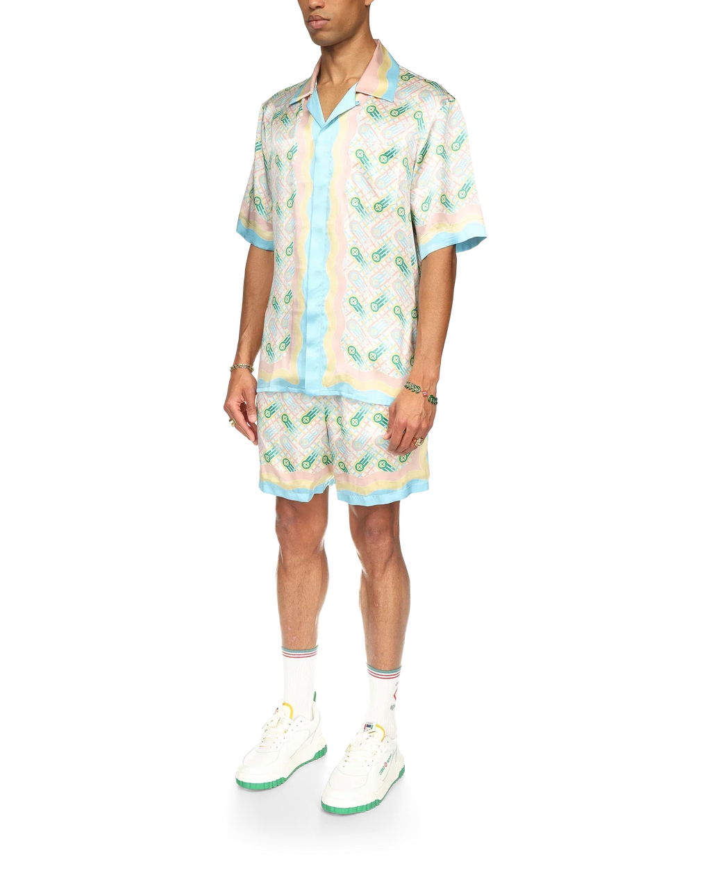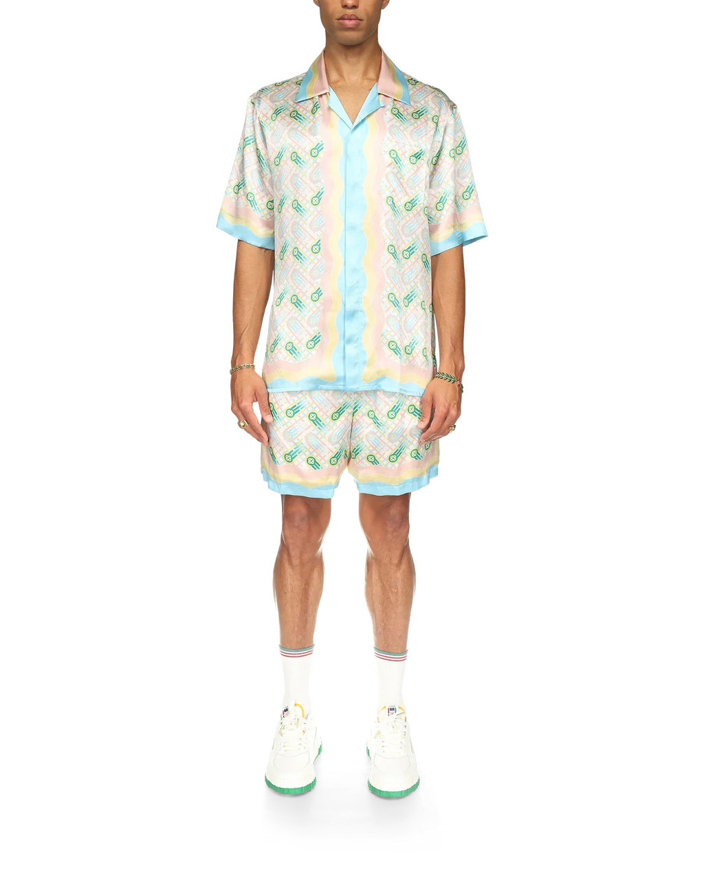 The Ping Pong Silk Shirt is an all-over print design featuring the house's interlocking CC monogram. Finished with wavy detailing on collar, cuffs and hem, a breast pocket, button closure and a Casablanca branded label.