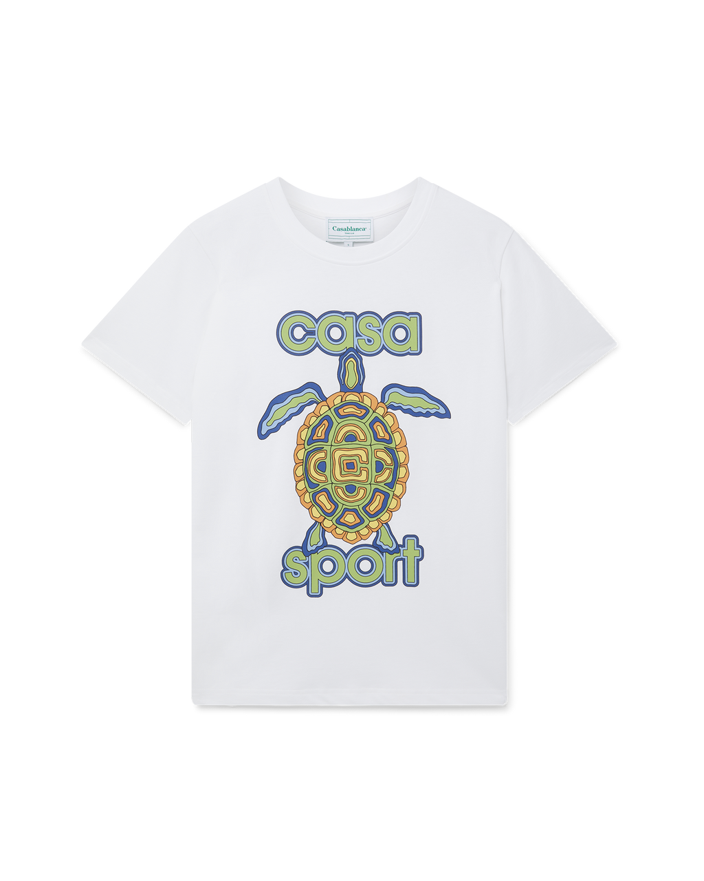 Le t-shirt blanc en coton biologique sérigraphié Casa Turtle présente notre orange emblématique dans des illustrations saisonnières. Fabriqué à 100 % en coton biologique, il présente un col rond classique avec des manches courtes et a été conçu pour une coupe décontractée.