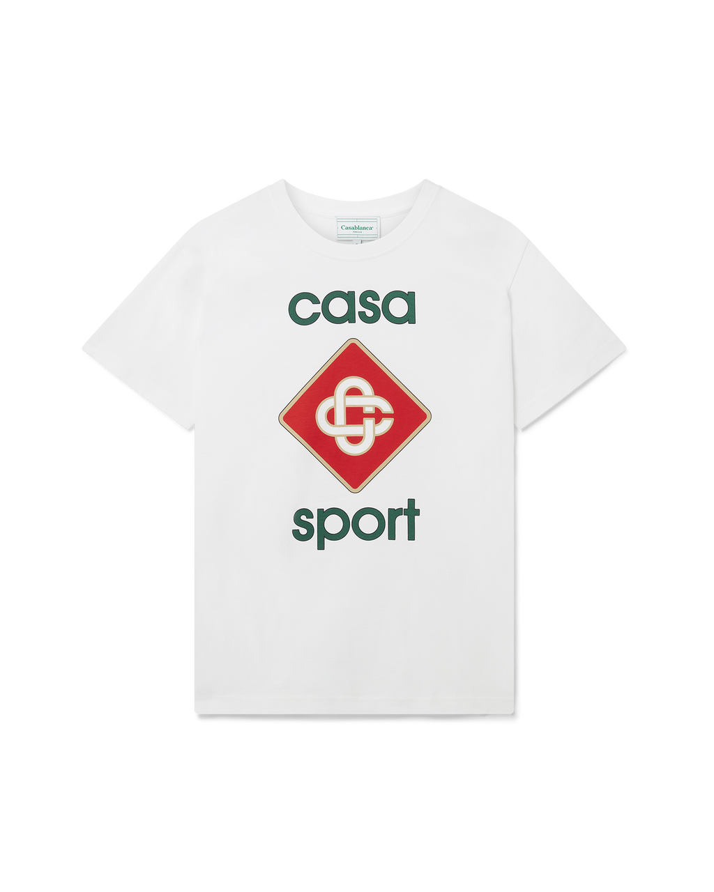 Le t-shirt unisexe en coton biologique sérigraphié Casa Sport présente le monogramme en diamant emblématique de la maison réinterprété pour cette saison. Complété par un col rond classique, des manches courtes et une étiquette de la marque Casablanca Paris, conçu pour une coupe décontractée.