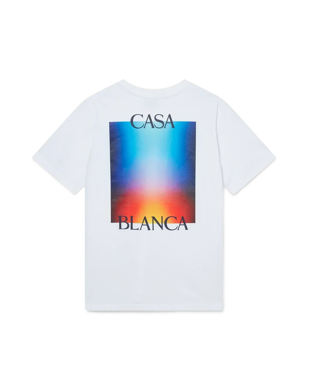 Le t-shirt Gradient Casa Logo est un modèle à manches courtes imprimé, conçu en coton bio, mettant en avant le dégradé de la saison inspiré par une interprétation futuriste du dégradé Casablanca : une forme d'aura inspirée des affiches et disques vintage de science-fiction. Il est complété par un col rond classique.