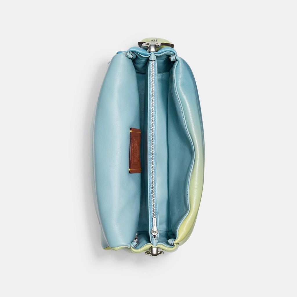 The Pillow Tabby reimagines the structured silhouette of an archival 1970s Coach design with plush, ultra-soft leather and wrapped Signature hardware. Featuring a colorful gradient ombré, the compact 26 features two detachable straps to carry by hand, style as a short shoulder bag or wear crossbody.