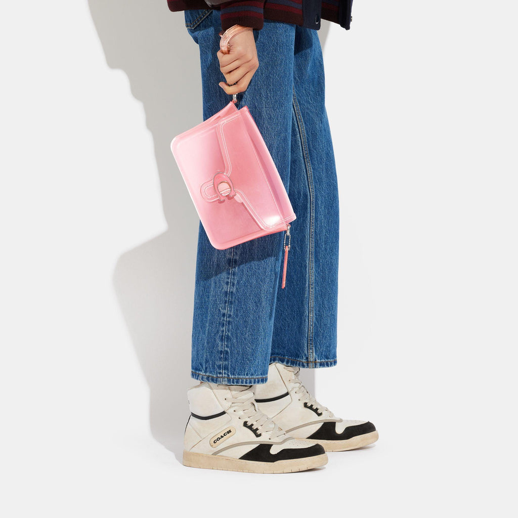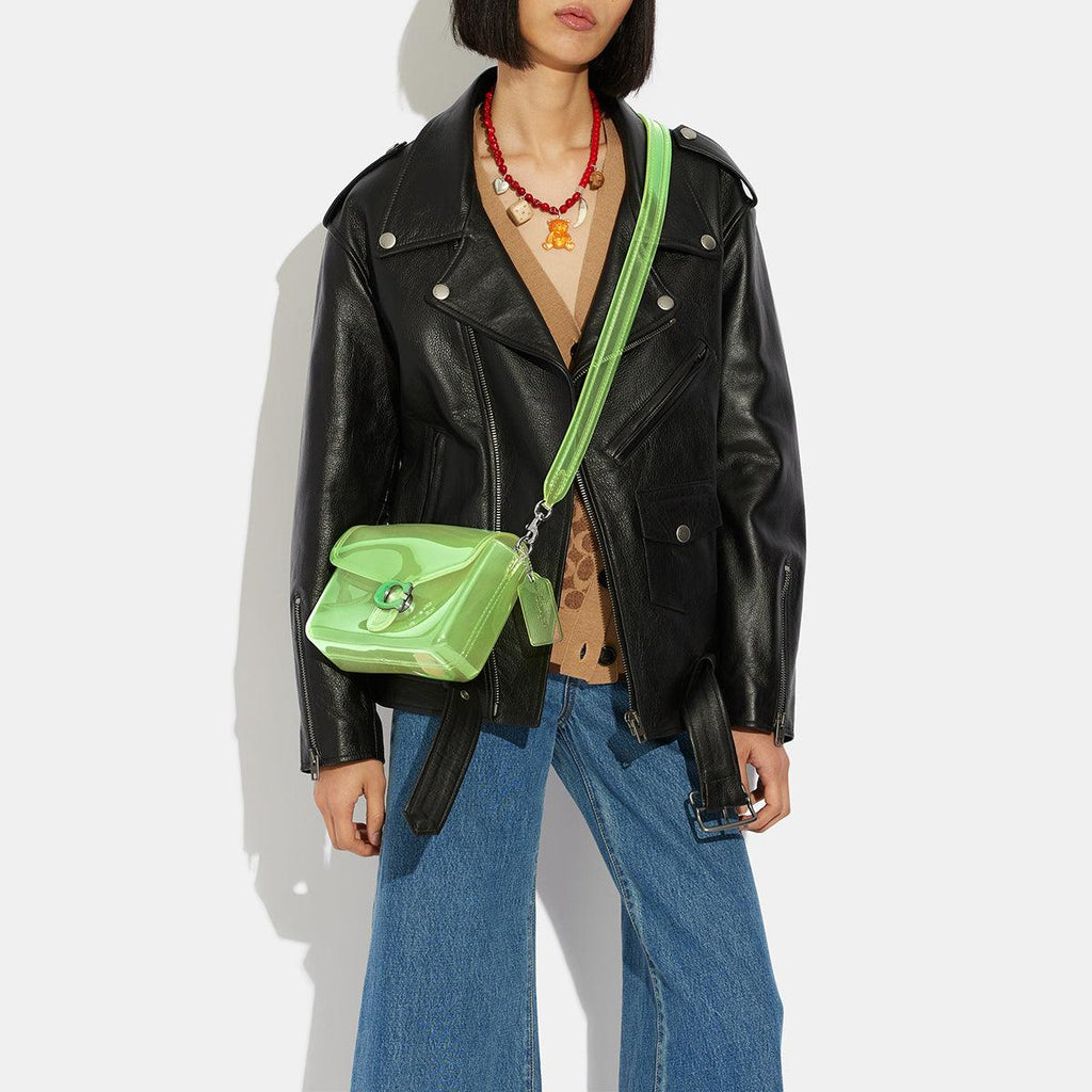 The Jelly Tabby reimagines the structured silhouette of an archival 1970s Coach design with candy-colored transparent nostalgia and our tonal Signature hardware. A playful choice for day or night, this flexible and durable bag features an open compartment and is finished with both a detachable wrist strap and crossbody strap for versatile wear. (Full transparency: you’re going to reach for it again and again.)