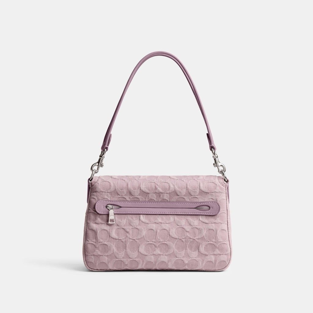 The Soft Tabby reimagines our structured take on an archival 1970s Coach design with a slouchy relaxed feel. Finished with our Signature hardware for an iconic touch, this laid-back light-wash Signature denim shoulder bag features smooth leather details, zip pockets inside and out to organize small accessories and two detachable straps to carry by hand, style as a short shoulder bag or wear crossbody.