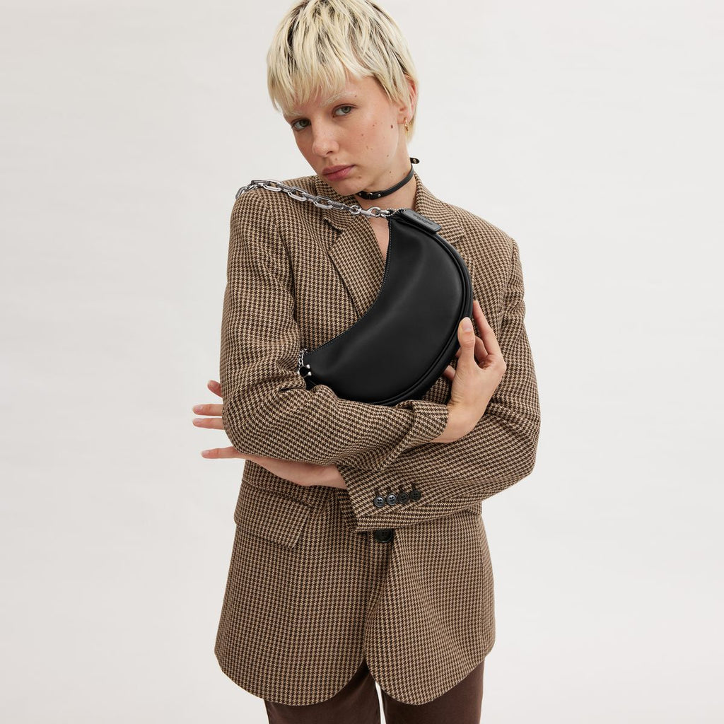 Soft And Spacious, Our Crescent-Shaped Mira Is Ahead Of The Curve. The Versatile Style Is Crafted Of Buttery Soft Glovetanned Leather Finished With A Secure Zip-Top Closure Detailed With Our C Hardware. It Comes With A Chunky Chain-Link Shoulder Strap And A Detachable Leather Strap For Crossbody Wear. (Explore The Possibilities.)