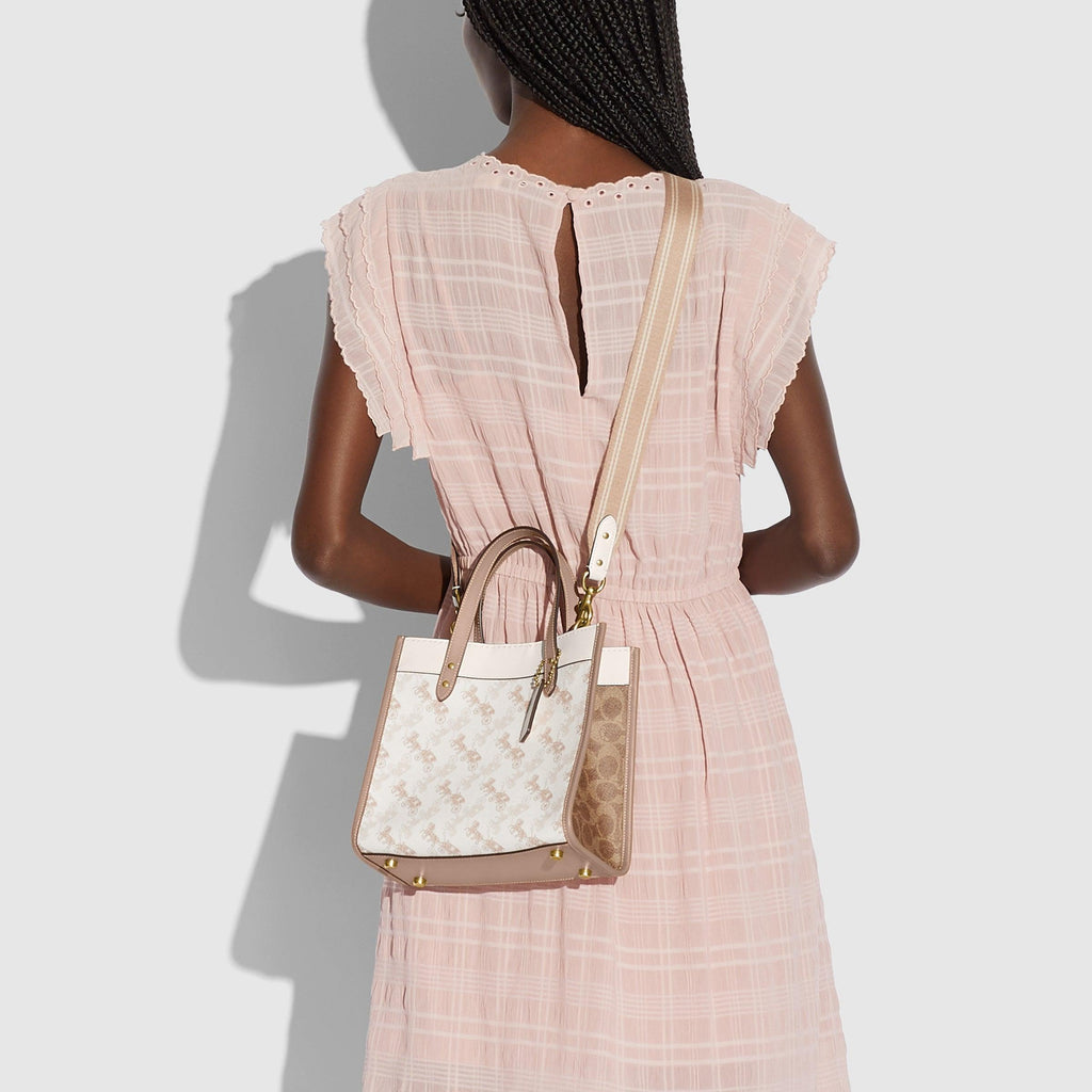 From busy weekdays to fun-filled weekends, our Field Tote 22 has space to hold everything you need with an inside zip pocket to hold small essentials. This versatile carryall is crafted in a mix of sturdy coated canvas featuring our iconic Horse and Carriage motif, refined leather and our Signature canvas. Attach the lightweight webbing strap to wear on the shoulder or crossbody.