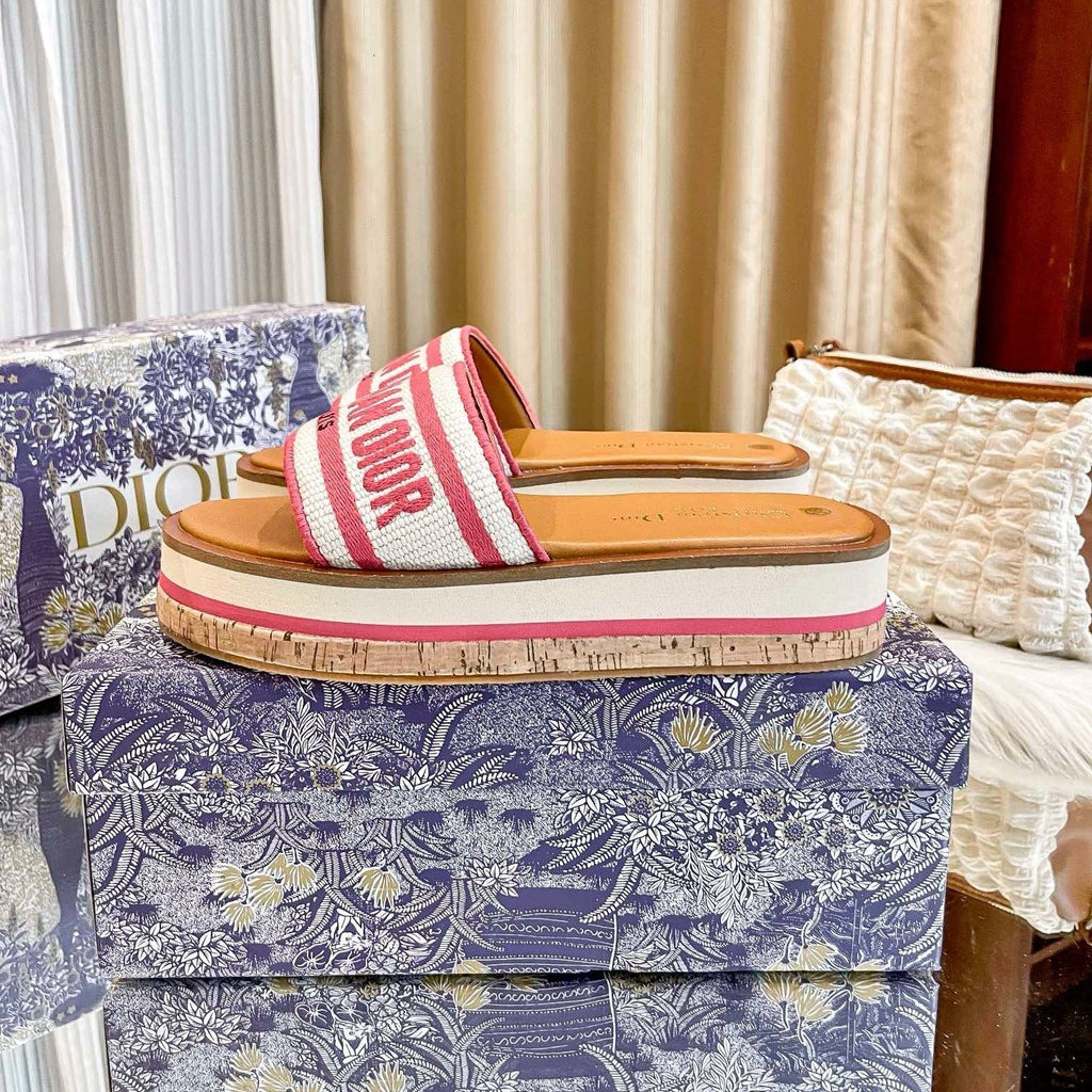 🩴 Dior – Mule à plateforme Dway en raphia naturel et coton brodé Rose