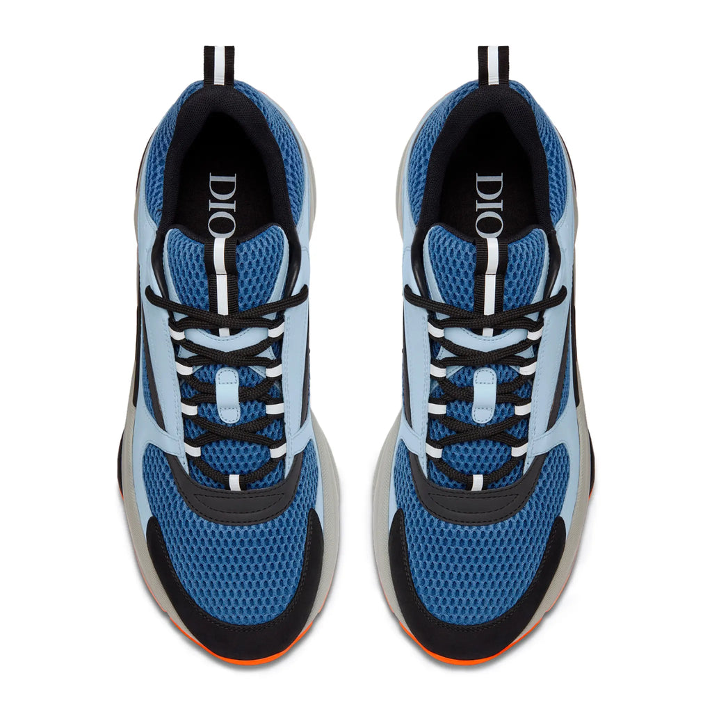 La sneaker B22 réimagine la sneaker chunky à travers une lentille rétro. Combinant différentes matières et textures, dont le veau lisse bleu clair et la maille technique bleue, elle présente une esthétique sportswear audacieuse. Les lacets ronds et la signature "DIOR" en relief sur le côté complètent l'épaisse semelle en caoutchouc sculptée, grise et noire avec des bordures orange. La sneaker se porte avec n'importe quelle pièce décontractée pour une silhouette sportive et contemporaine.