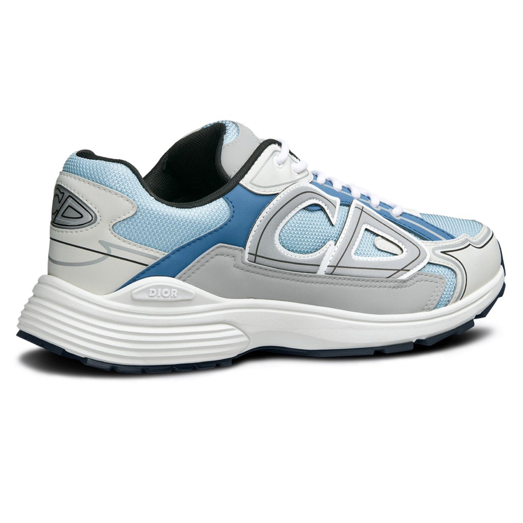 La basket basse B30 est devenue un nouvel essentiel de la Maison qui se distingue par sa silhouette moderne et sportive. Réalisée en maille bleu ciel et tissu technique Dior gris, blanc et bleu, elle est rehaussée d'une signature réfléchissante " CD30 " à l'esthétique graphique. La B30 arbore également les signatures argentées " DIOR B30 " et " CD30 " sur la languette et l'arrière de la sneaker. Une semelle extérieure en caoutchouc sculptée et ultra-légère met en valeur les différents détails de la marque, tandis qu'un intérieur élastique assure un confort optimal. La basket B30 complétera n'importe quelle tenue décontractée.