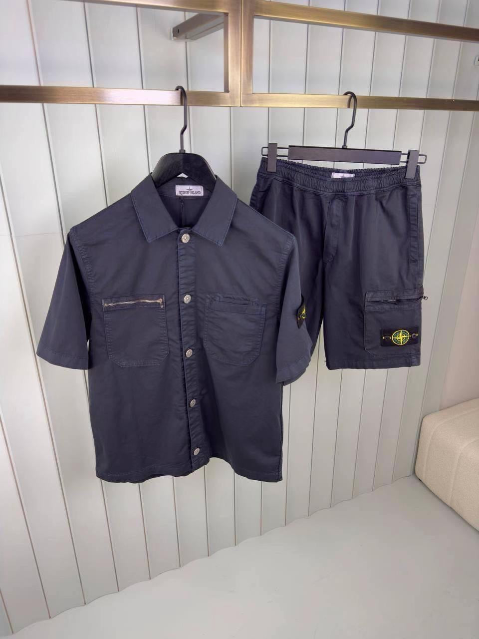 Stone Island - Ensemble Chemise + SHORT Bleu Marine