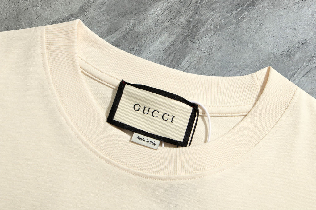 Gucci - T-shirt avec un design de pomme rouge et logo Gucci - Crème