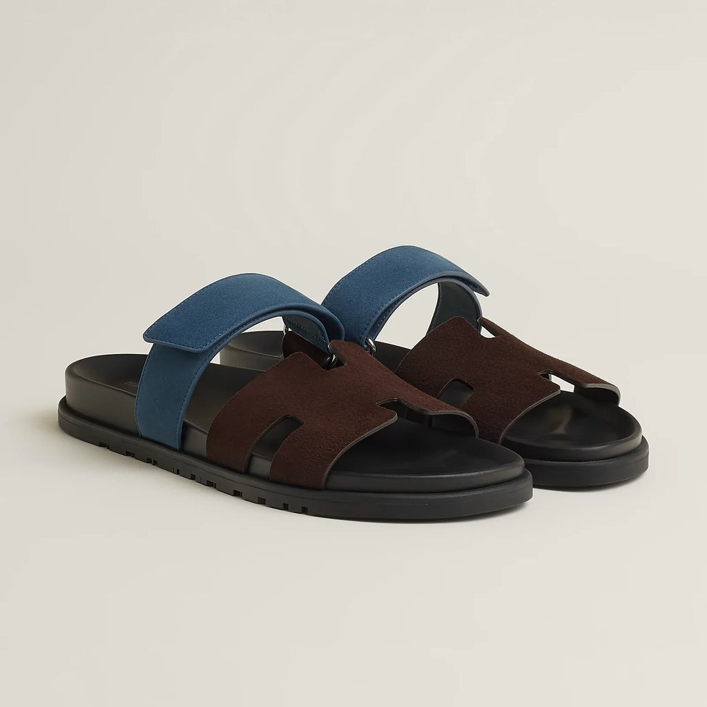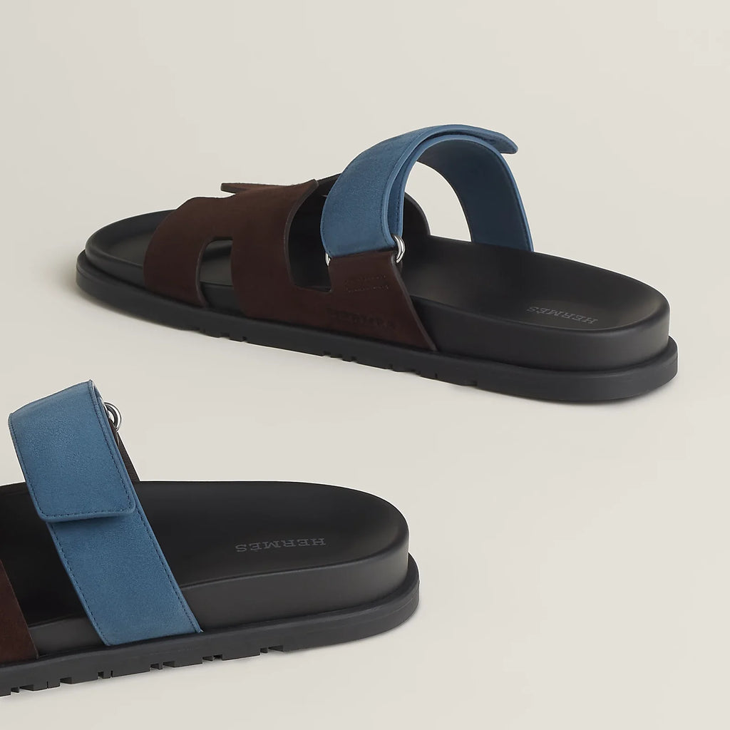 Hermès - Sandales Chypre Marron Ébène / Bleu Turquin