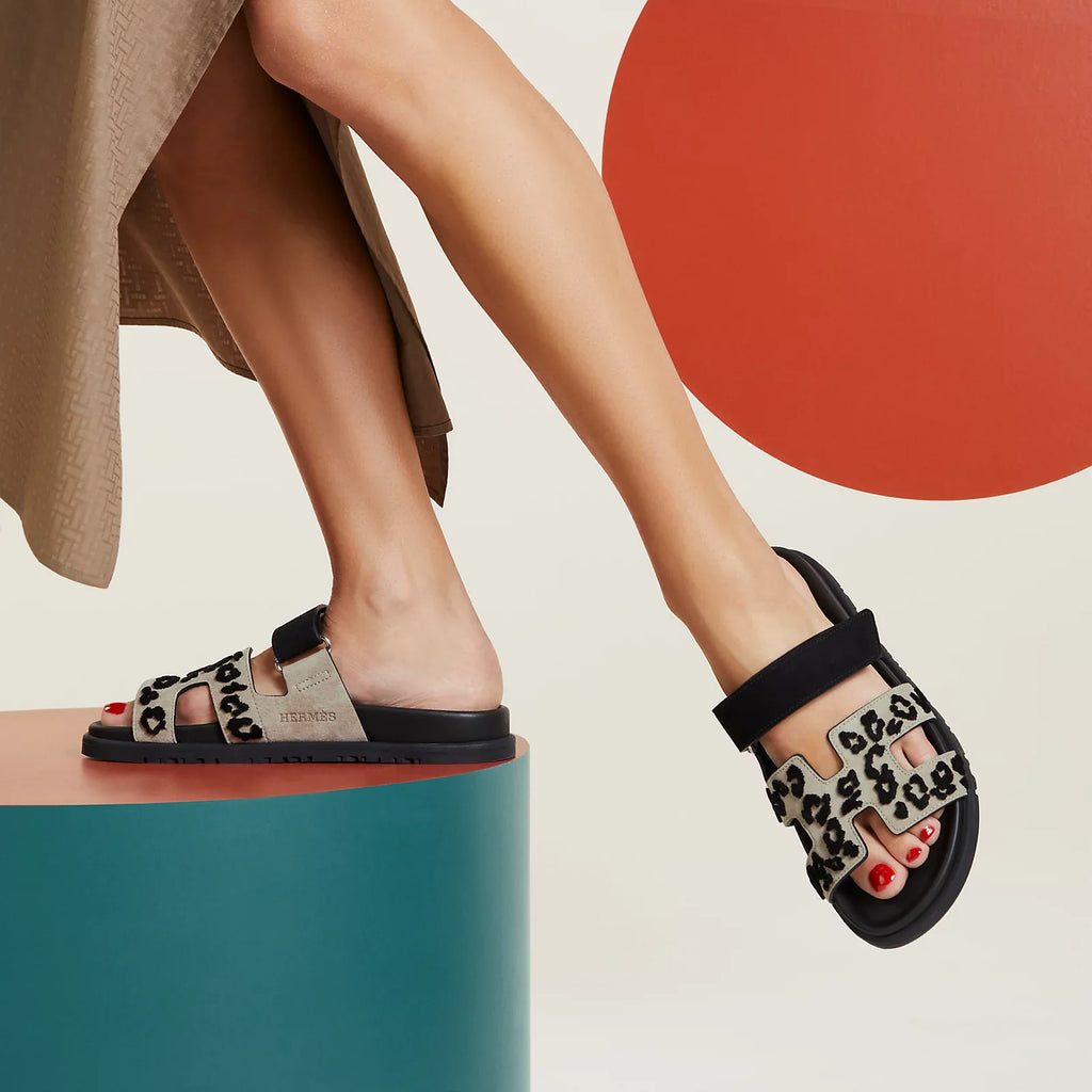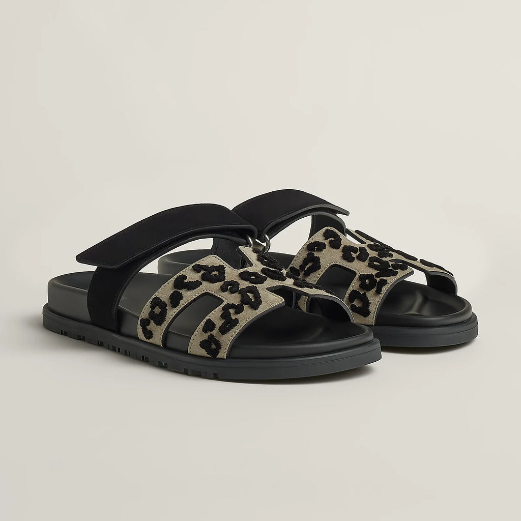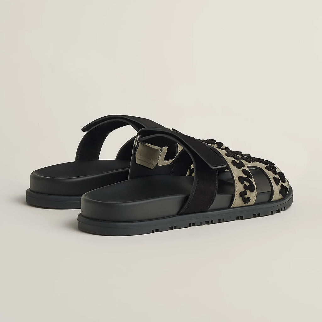 Hermès - Sandales Chypre Beige Esquisse / Noir