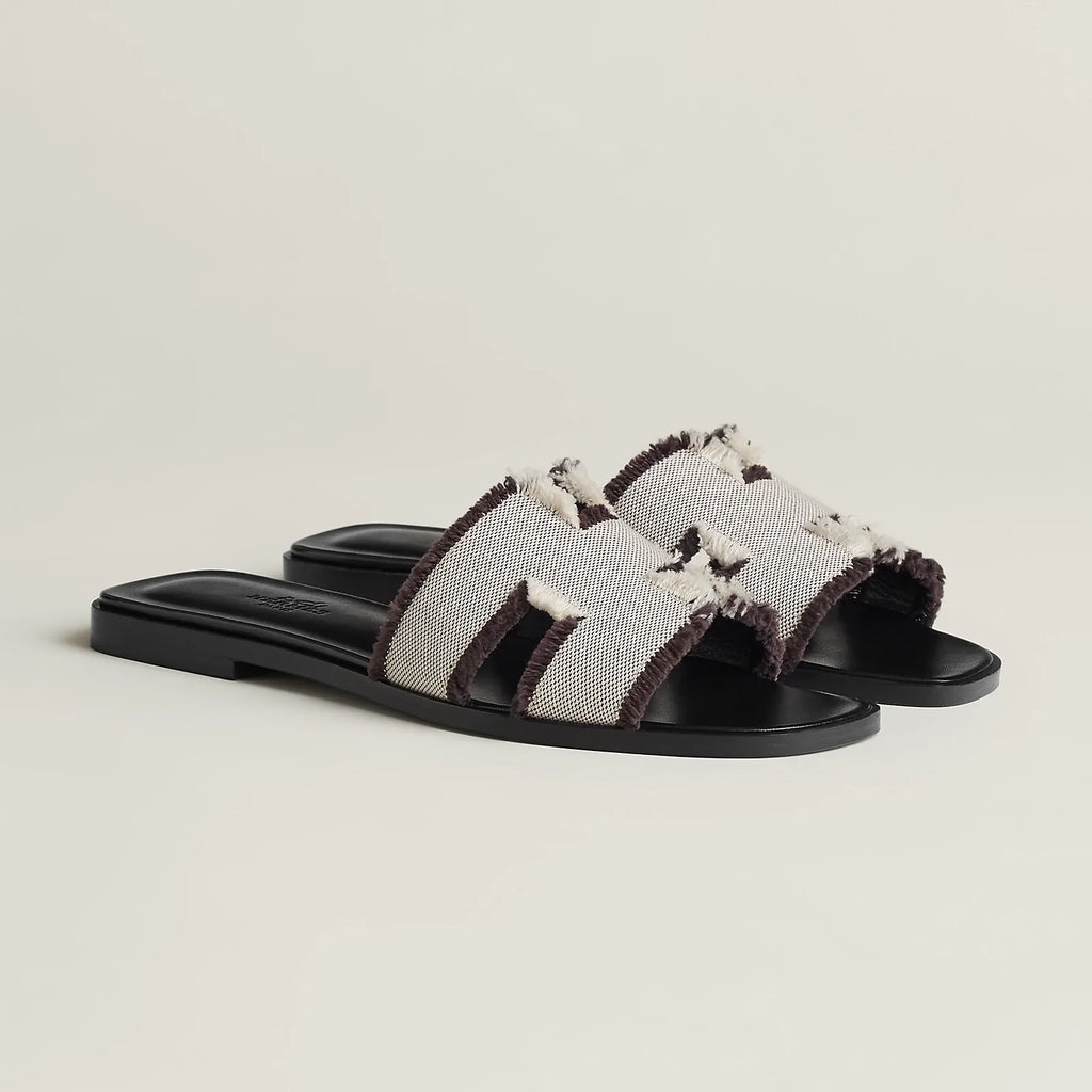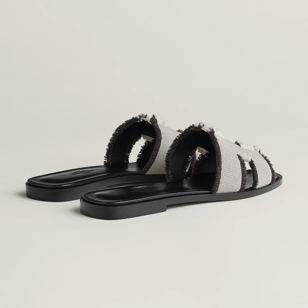 Hermès - Sandales Oran Prunoir en toile H effrangée