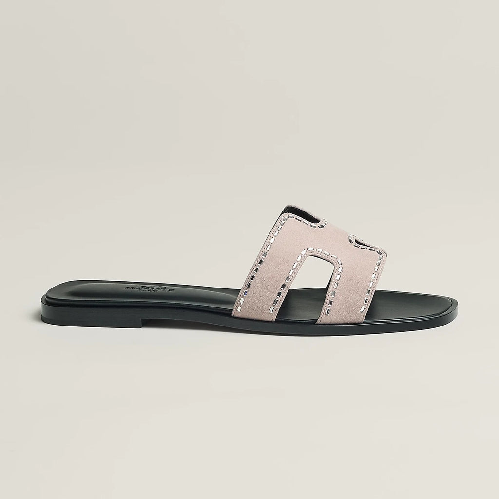 Hermès - Sandales Oran Rose Porcelaine avec Strass