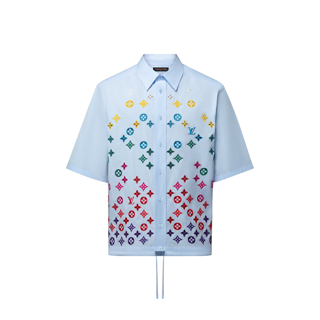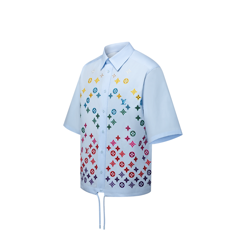 Louis Vuitton - Chemise manches courtes brodée fleur de Monogram Bleu Ciel