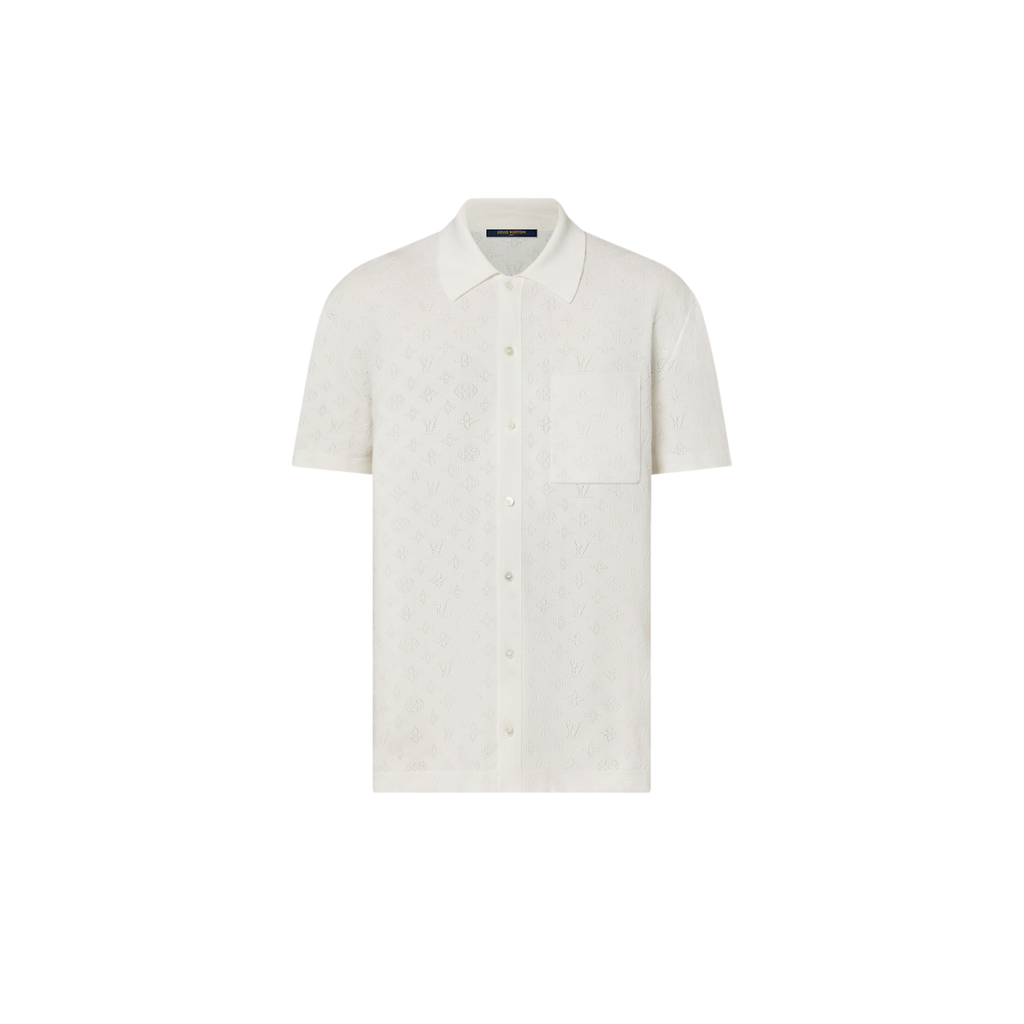 Louis Vuitton - Chemise manches courtes Monogram en pointelle de coton Blanc