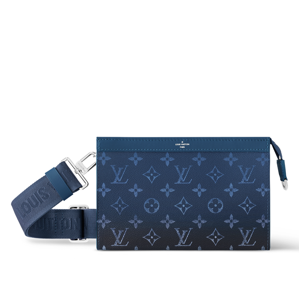Ce portefeuille Gaston Wearable en toile Monogram et cuir de vache Taïga assorti évoque les couleurs de l'été. Ce petit sac présente une bandoulière amovible et ajustable en tissu, ainsi qu'un porte-cartes qui se détache pour permettre le paiement sans contact. Ce modèle est complété par une doublure en tissu noir.