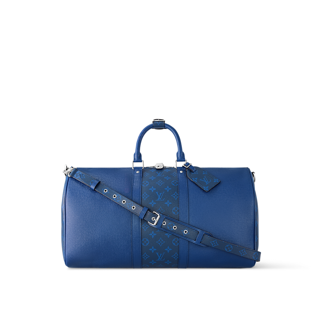 Ce sac Keepall 50 Bandoulière adopte une nouvelle allure pour la saison Printemps-Été 2019. Son design d'apparence monochrome s'avère être dans un coloris nuancé qui allie toile Monogram et cuir Taïga souple. Ce sac léger offre des dimensions généreuses de format cabine, idéales pour ranger la garde-robe de toute une semaine.