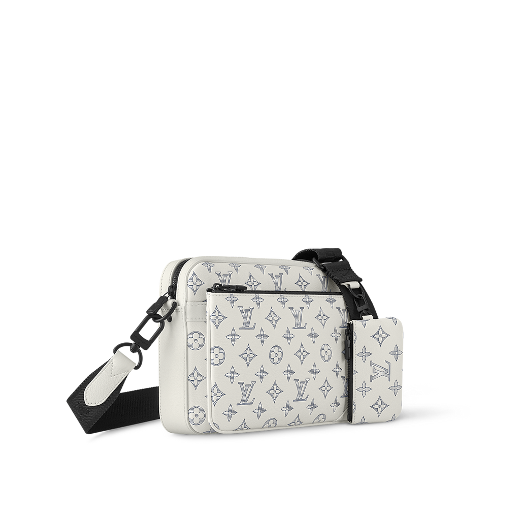 Ce sac Trio Messenger hybride revêt du cuir de veau embossé Monogram. Il possède un compartiment principal, ainsi qu'une poche avant à fermeture à glissière et un petit porte-monnaie, tous deux amovibles. La bandoulière en jacquard signée « Louis Vuitton », à la fois réglable et amovible, autorise un porté confortable à l'épaule ou croisé.