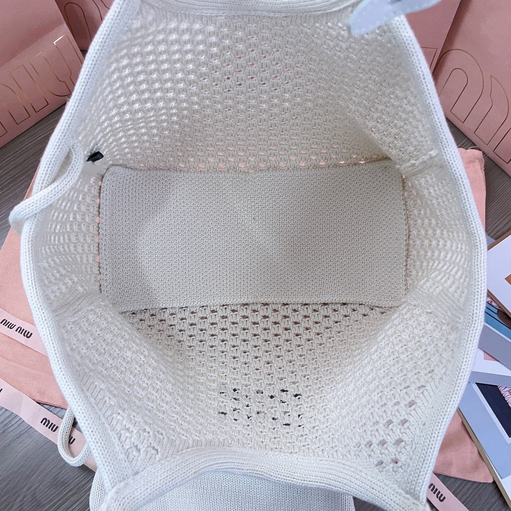 Un sac au style chic et décontracté, le Crochet Tote Bag Blanc de Miu Miu combine l'artisanat raffiné et une silhouette moderne. Sa texture unique et sa couleur blanche en font l'accessoire parfait pour une touche de légèreté et d'élégance à vos tenues.