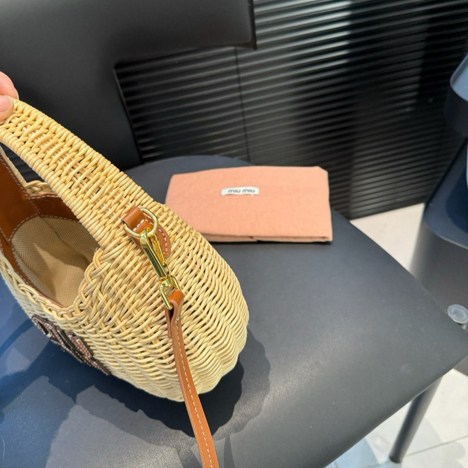 Sac hobo en osier naturel avec bandoulière en cuir amovible. Doublure en lin et poche intérieure. Parfait pour un style estival et élégant.