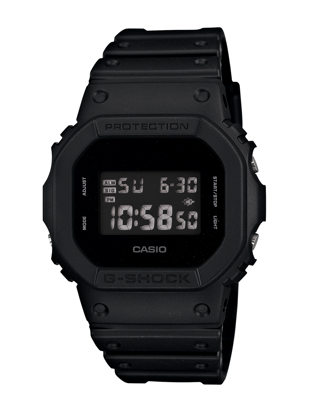 G-SHOCK noir basique. Présentation de designs monotones entièrement noirs. Les boîtiers et les bracelets de ces modèles sont réalisés dans une finition mate.