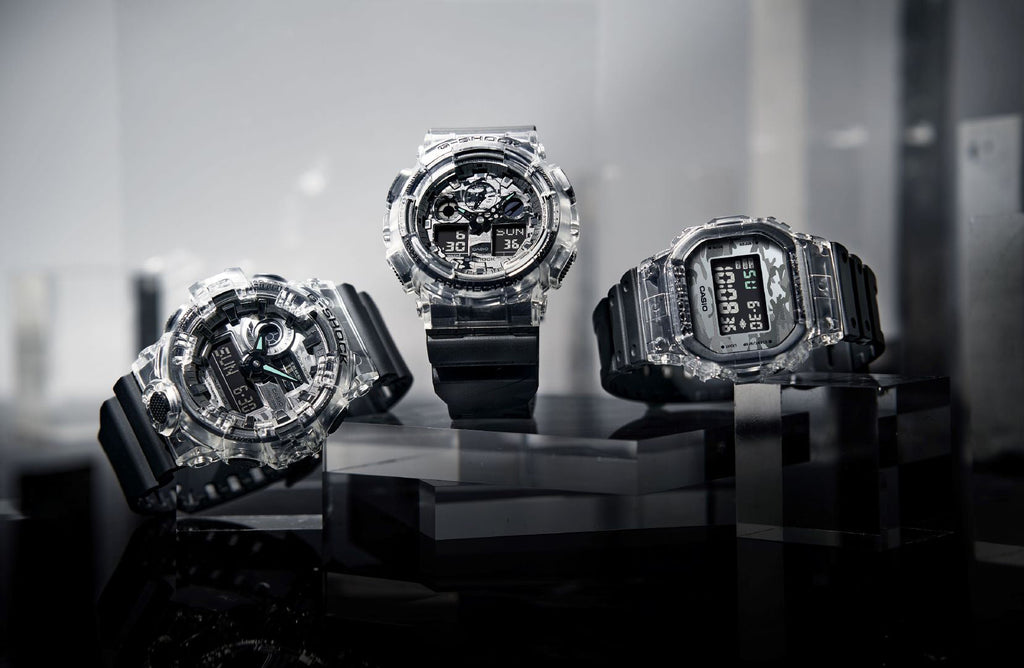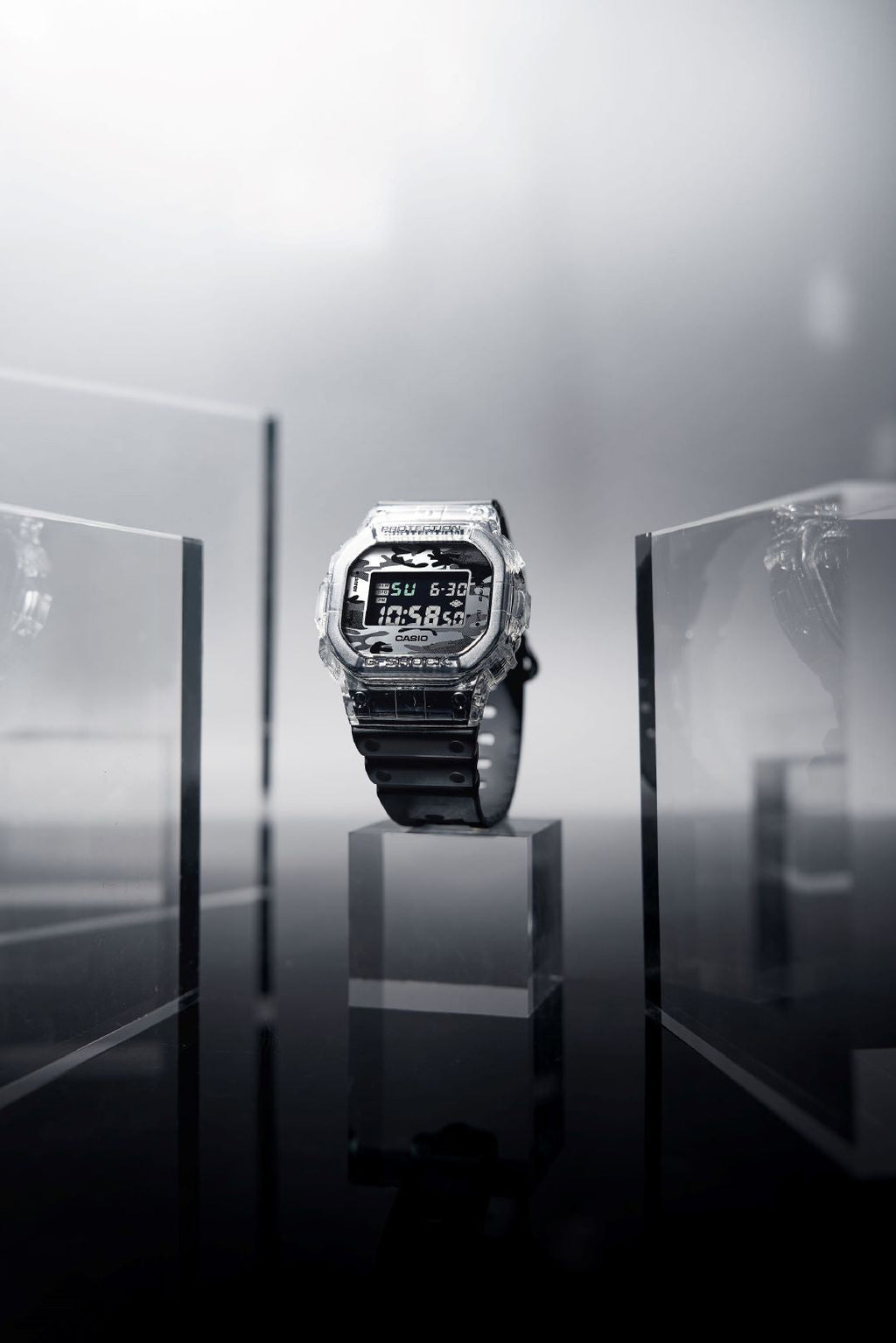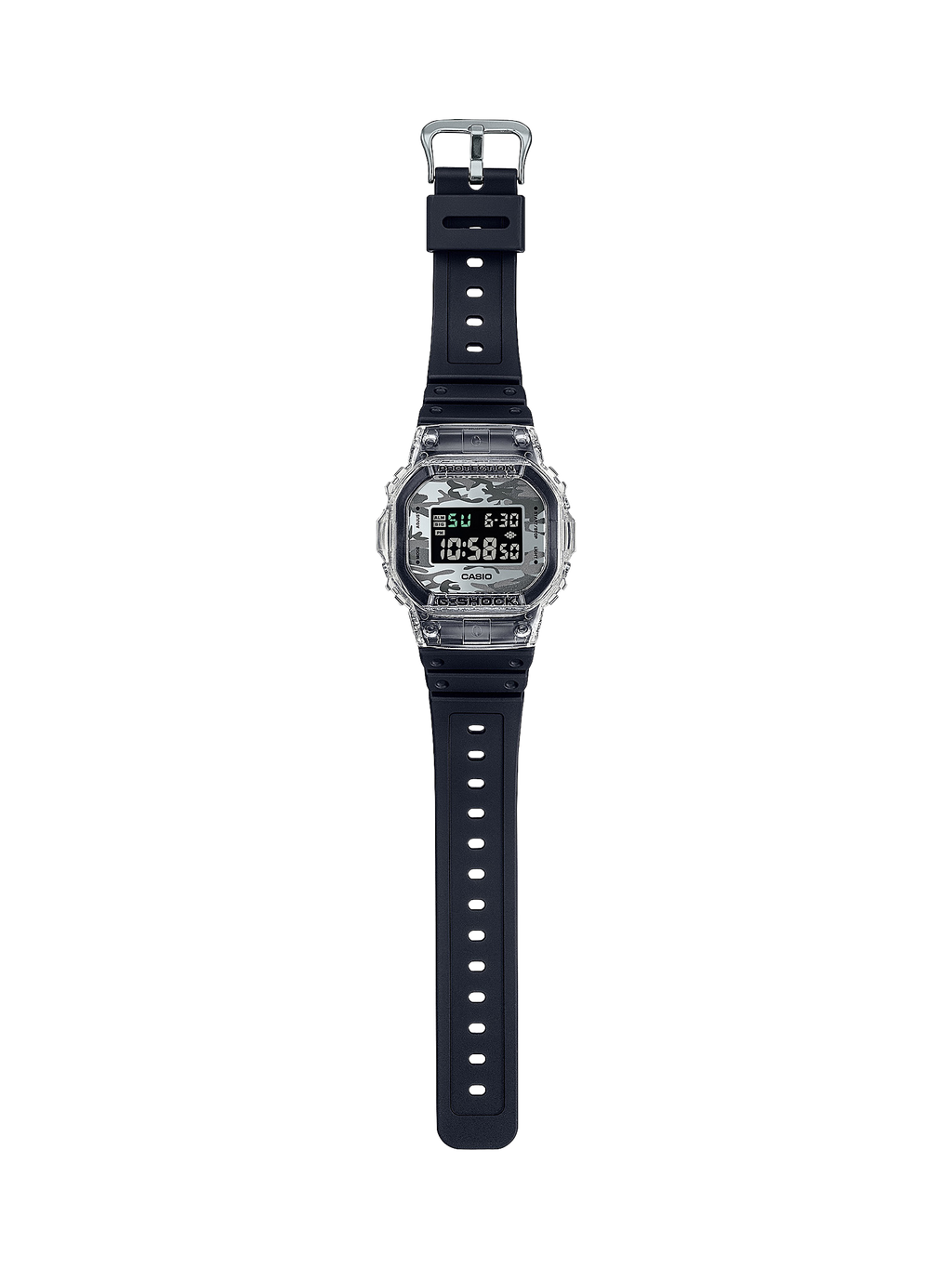 Soyez furtif dans une G-SHOCK avec cadran camouflage et lunette translucide.