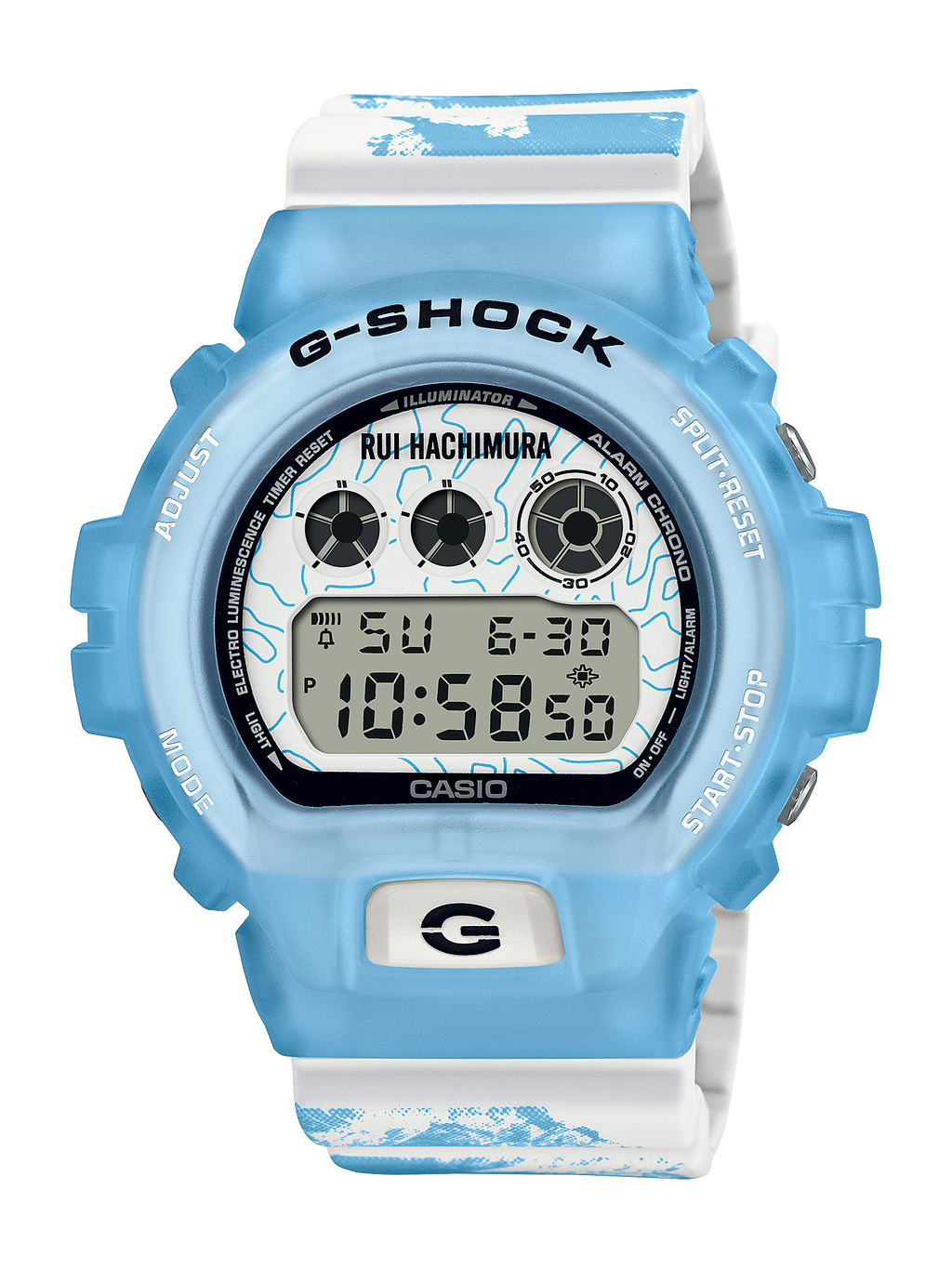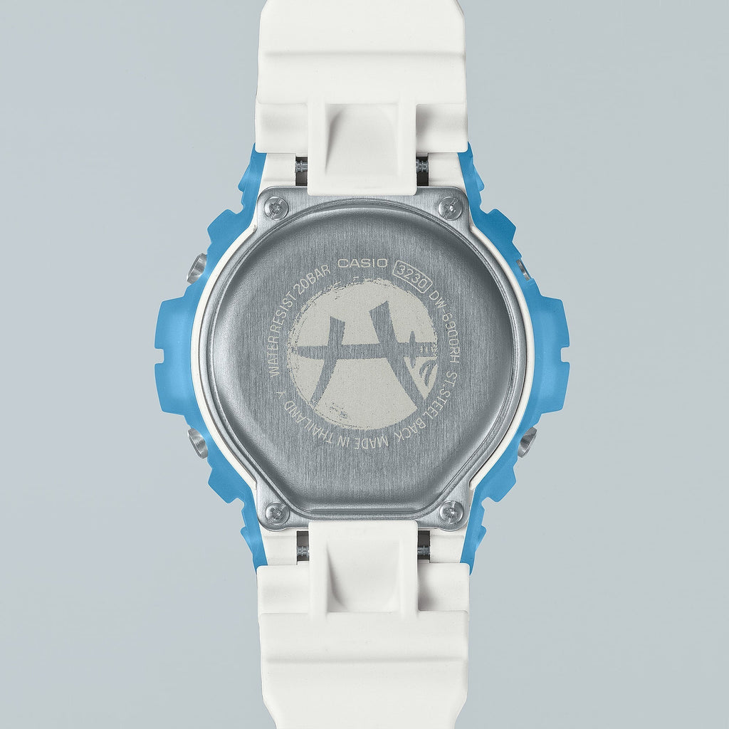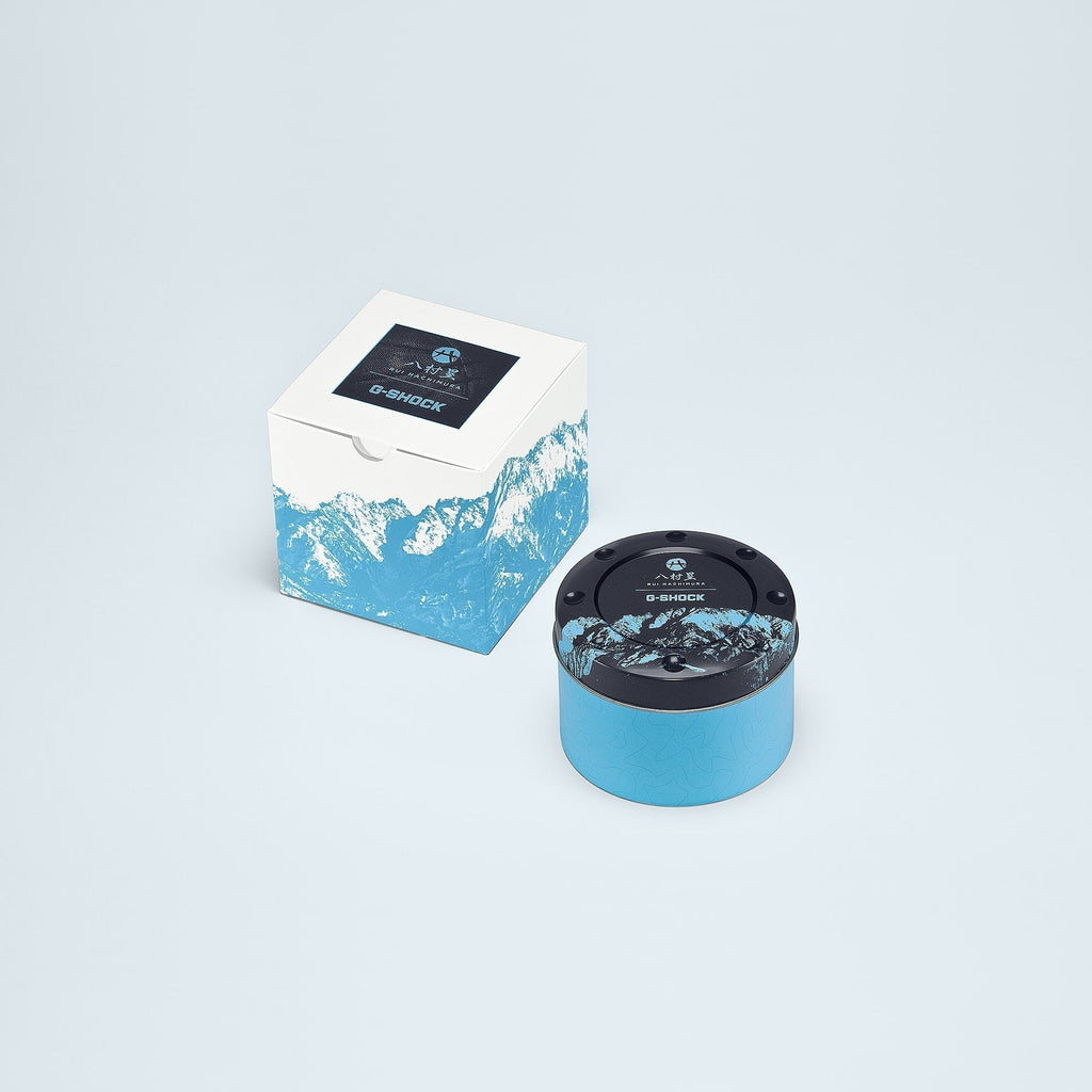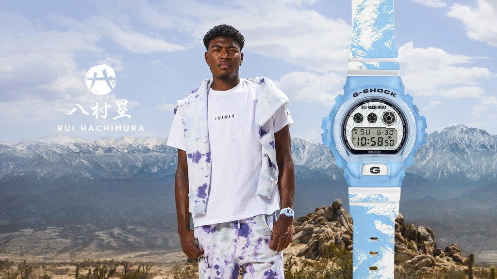 Cette collaboration commence avec la conception distinctive du triple graphique et du bouton avant du DW-6900. Emportez ensuite la lunette et le bracelet à Toyama, où Hachimura est né, avec un imprimé audacieux des montagnes de Tateyama en bleu glacier et blanc, inspiré de la fonte des neiges des Alpes japonaises.