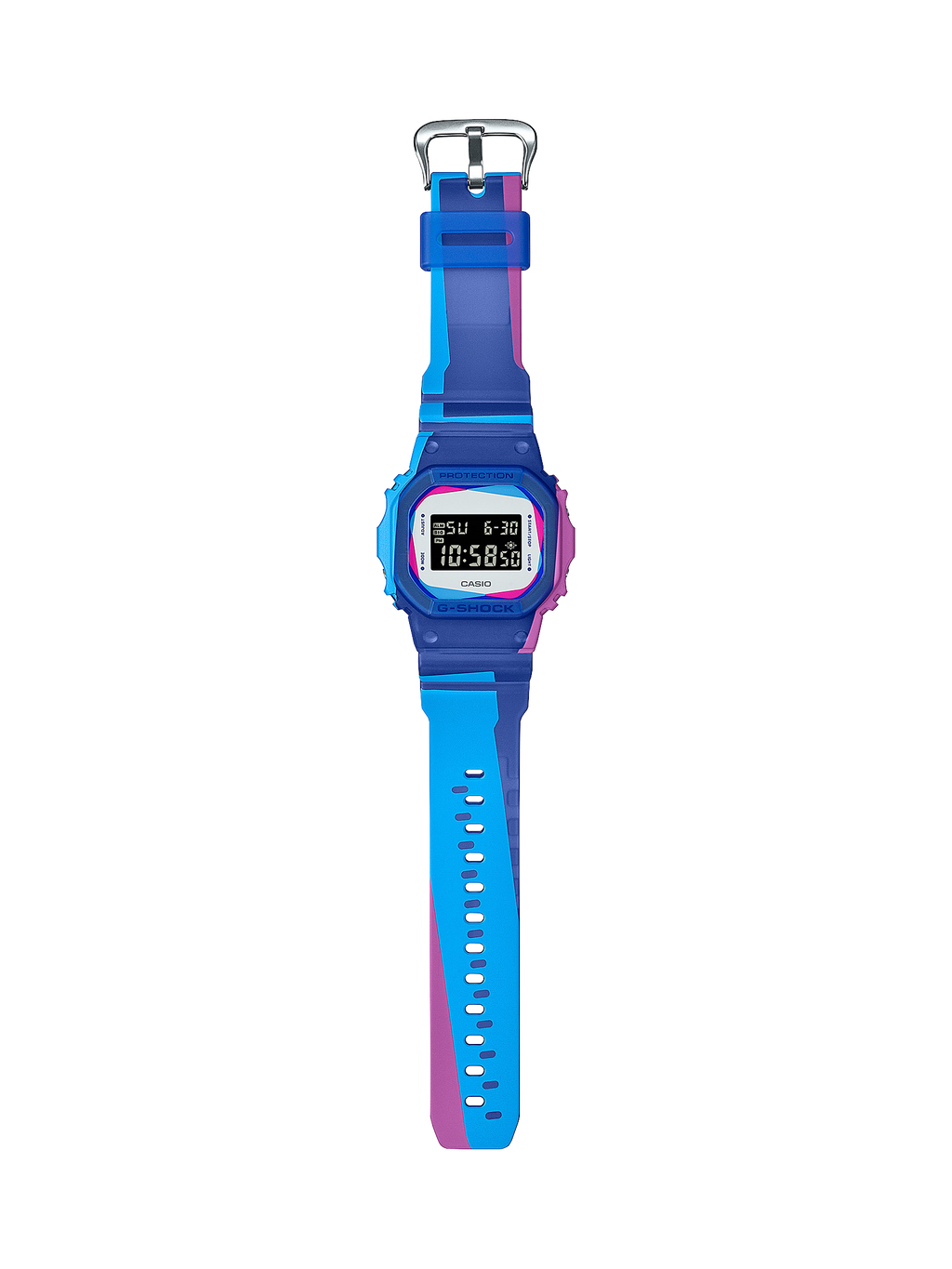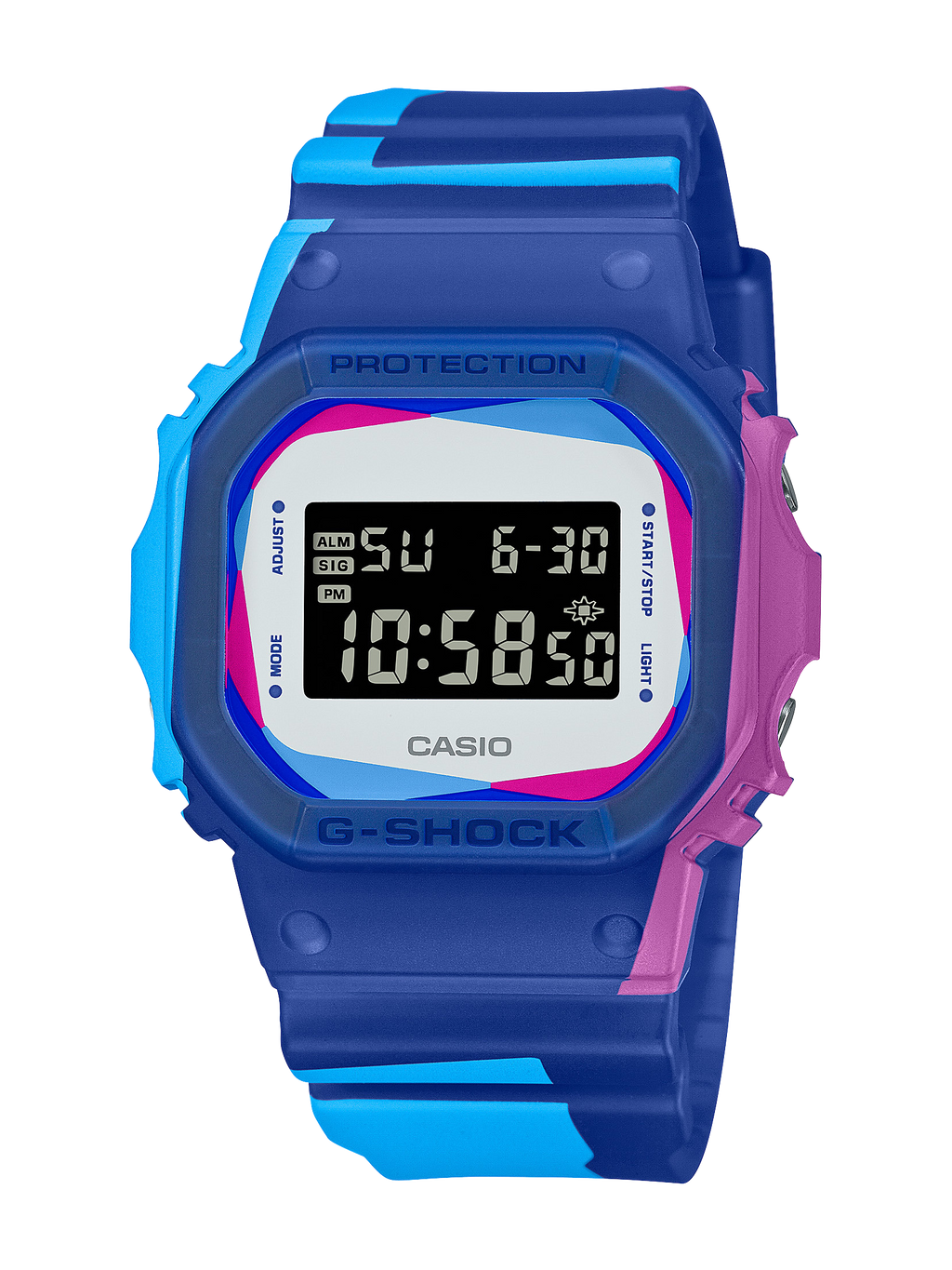 L'inclinaison et le chevauchement involontaires pendant le processus d'impression offrent une palette de couleurs unique en son genre. Sortez des sentiers battus avec cette version unique du modèle de base DWE-5600 : une montre qui ouvre les possibilités lorsque la technologie d'impression avancée se décentre légèrement.