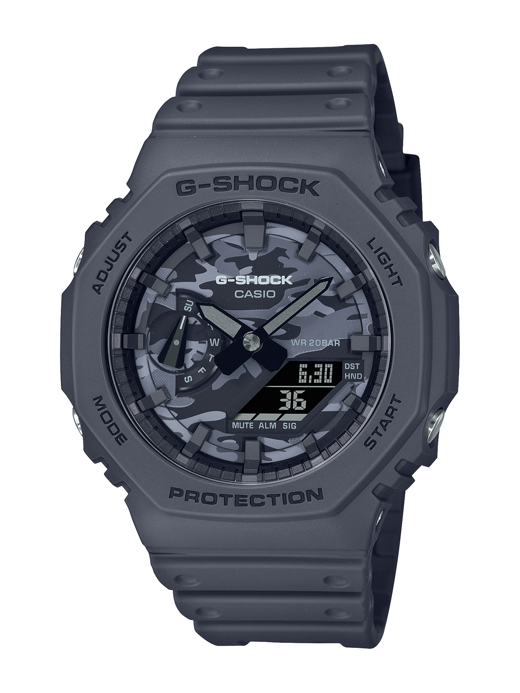 Une montre qui vous accompagne partout, de la nature sauvage au centre-ville, dans des couleurs parfaites qui s'intègrent partout. Doté d'un motif camouflage G-SHOCK original sur le cadran.