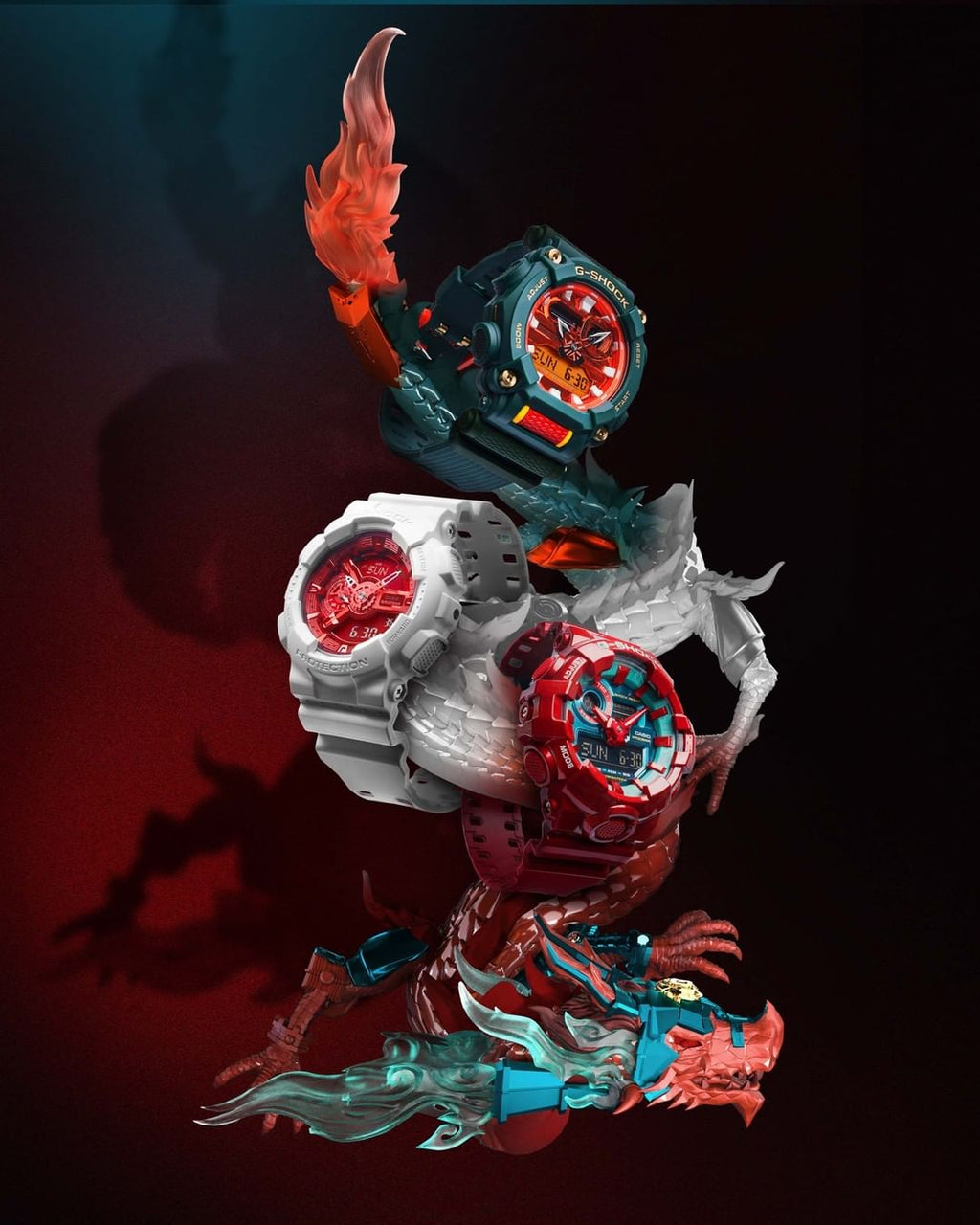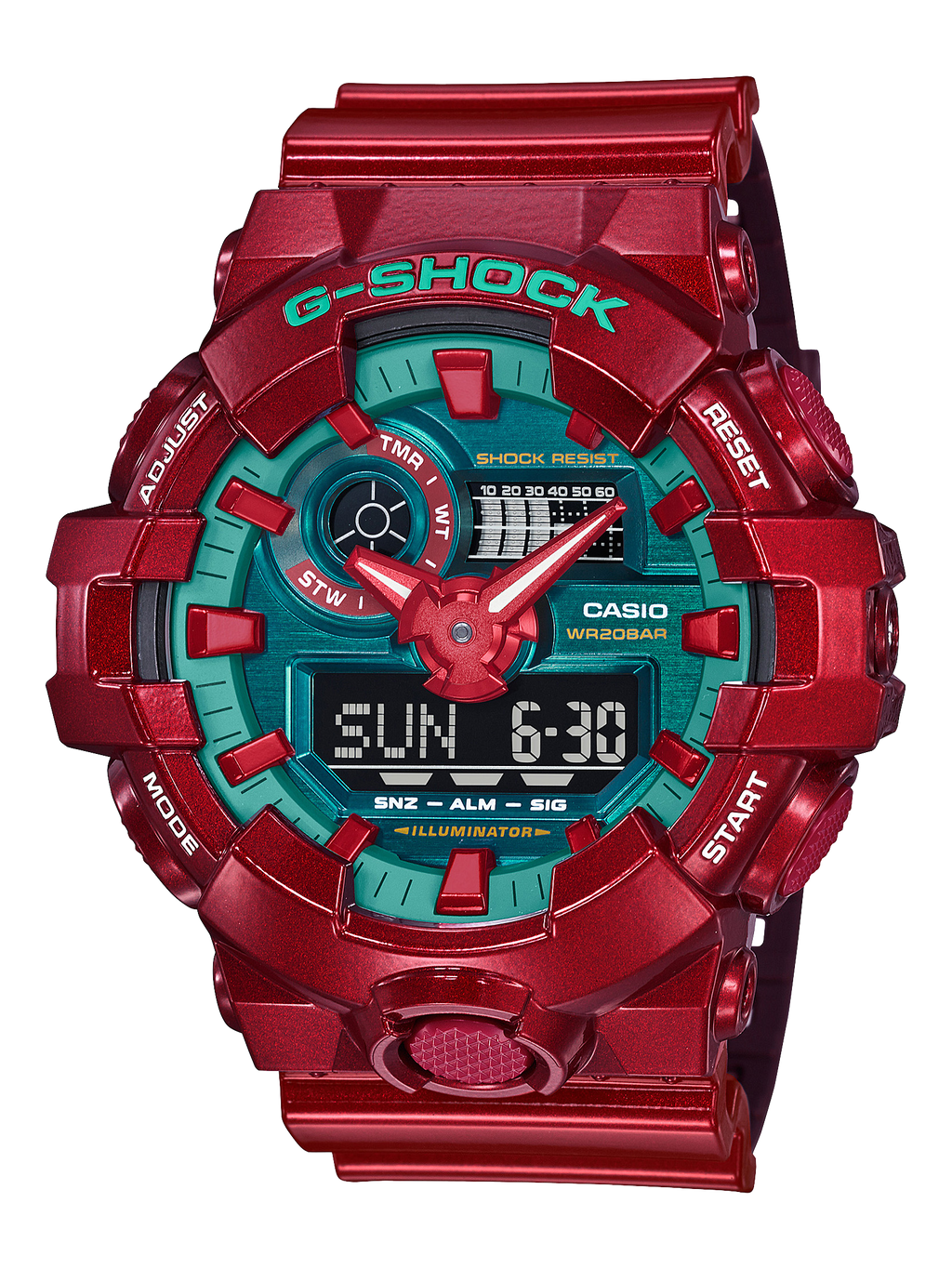 Ce nouveau modèle intègre le style oriental et urbain d'Extrême-Orient. Le modèle de base est la puissante montre analogique-numérique GA-700 avec des designs aux couleurs orientales de rouge et de vert.