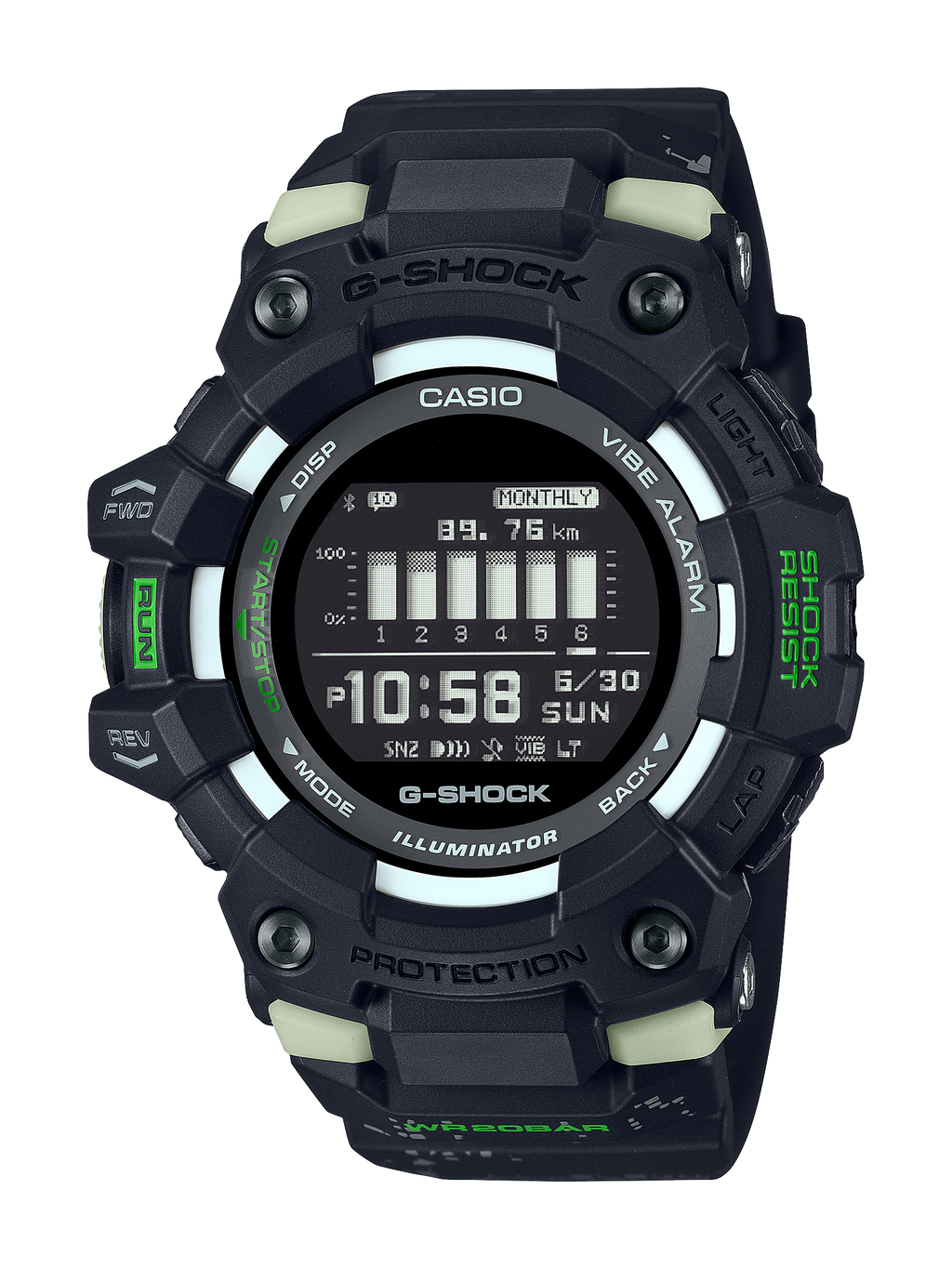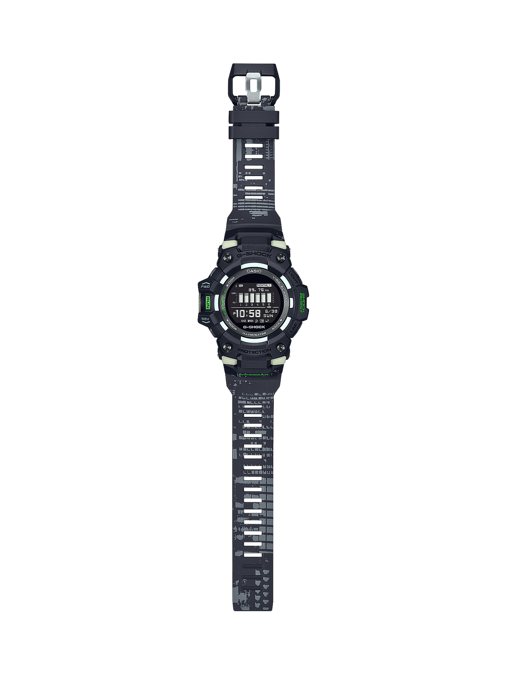 Le GBD-200LM est doté d'une résine qui brille dans le noir à l'endroit où la lunette et le bracelet se rencontrent, pour briller avec assurance dans les espaces non éclairés. Avec une bande à motif camouflage luminescente inspirée des paysages nocturnes urbains, ce design audacieux ne peut pas se tromper, de jour comme de nuit.