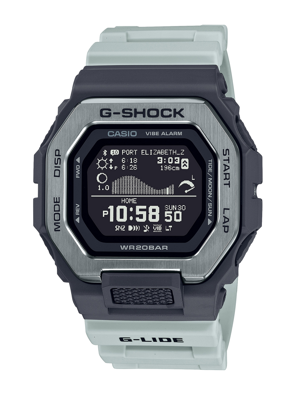 Il vous suffit de configurer l'application dédiée pour smartphone sur l'un des 3 300 spots de surf dans le monde pour vérifier les régimes de marée et les conditions de lumière du jour là où vous êtes. Le large cadran de la montre avec écran LCD haute résolution Memory in Pixel (MIP) fournit des lectures claires des graphiques de marée, de l'âge de la lune, des heures et des niveaux de marée haute/basse et des heures de lever/coucher du soleil, le tout en un coup d'œil.