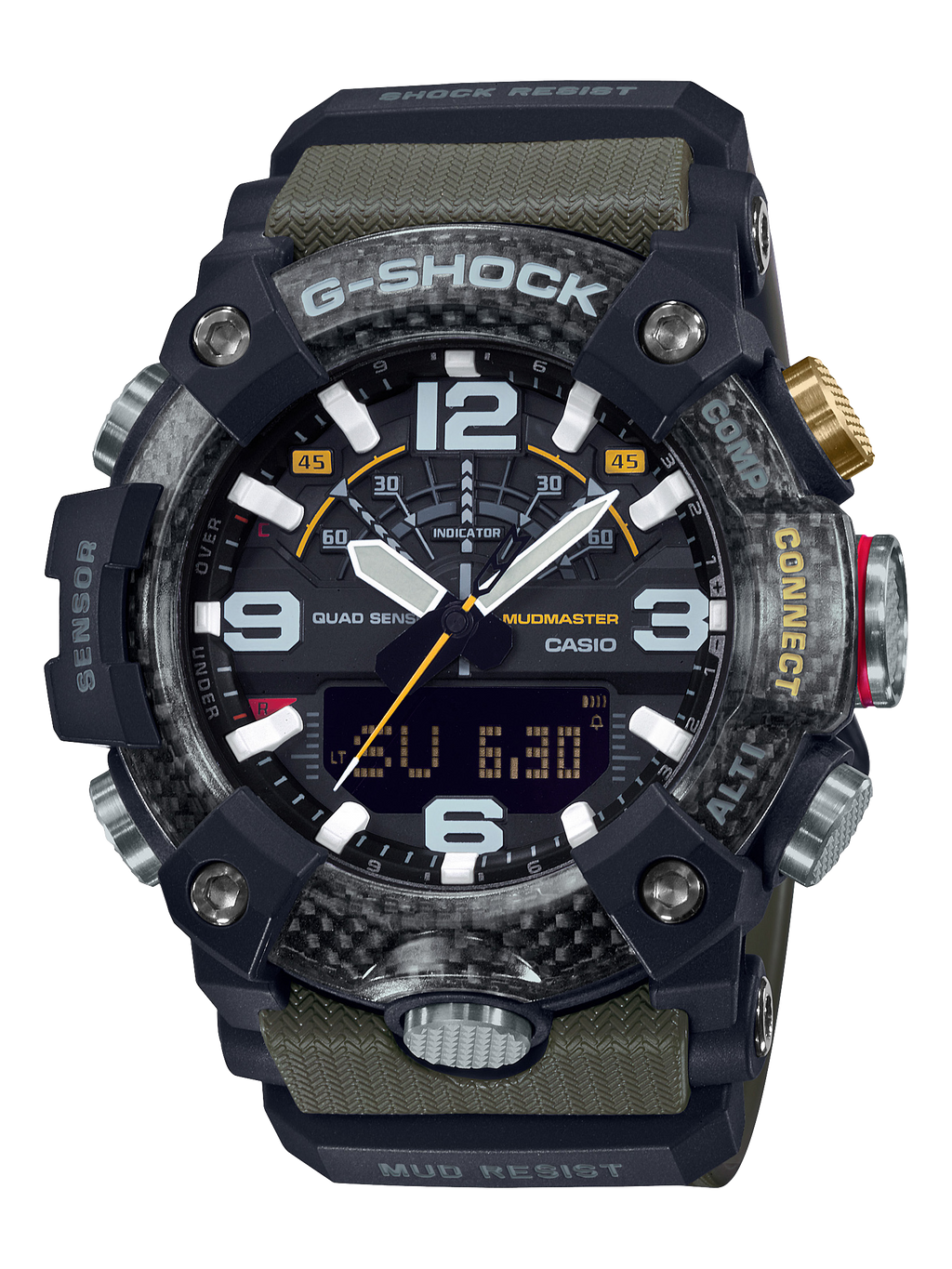De la série MASTER OF G MUDMASTER, la montre conçue et fabriquée pour résister aux environnements terrestres difficiles, viennent des modèles en résine de carbone qui intègrent un nouveau type de structure.