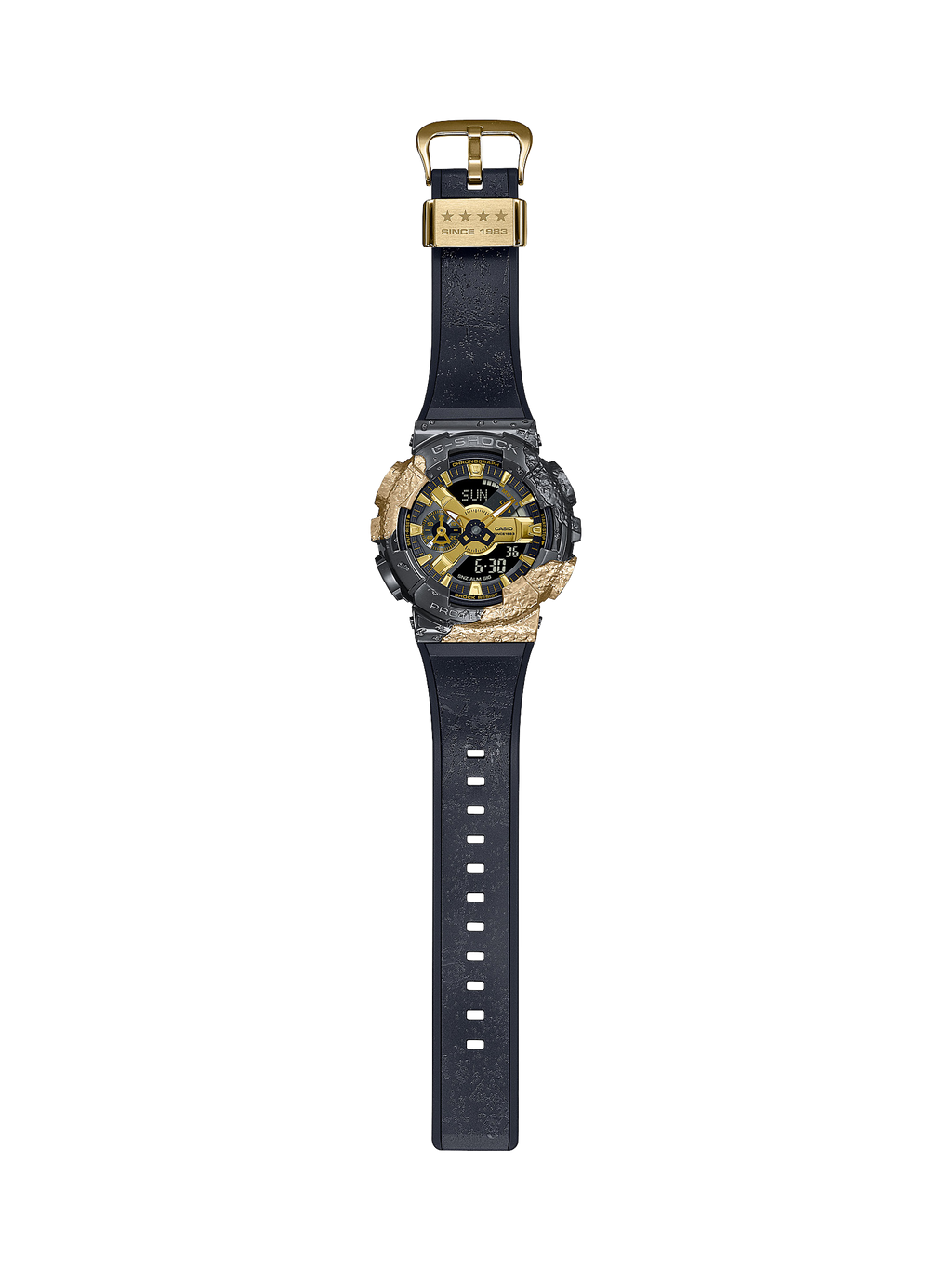 Ces garde-temps en édition limitée célèbrent entièrement le 40e anniversaire du G-SHOCK : la phrase « SINCE 1983 » apparaît sur le cadran ; le 40e logo conçu par Eric Haze est gravé sur le fond du boîtier et il y a quatre étoiles pour 40 sur le passant du bracelet.