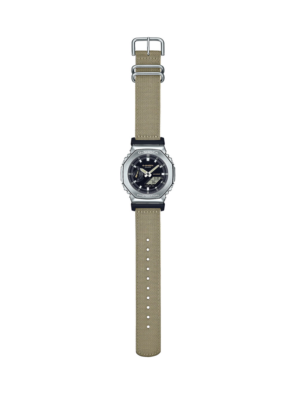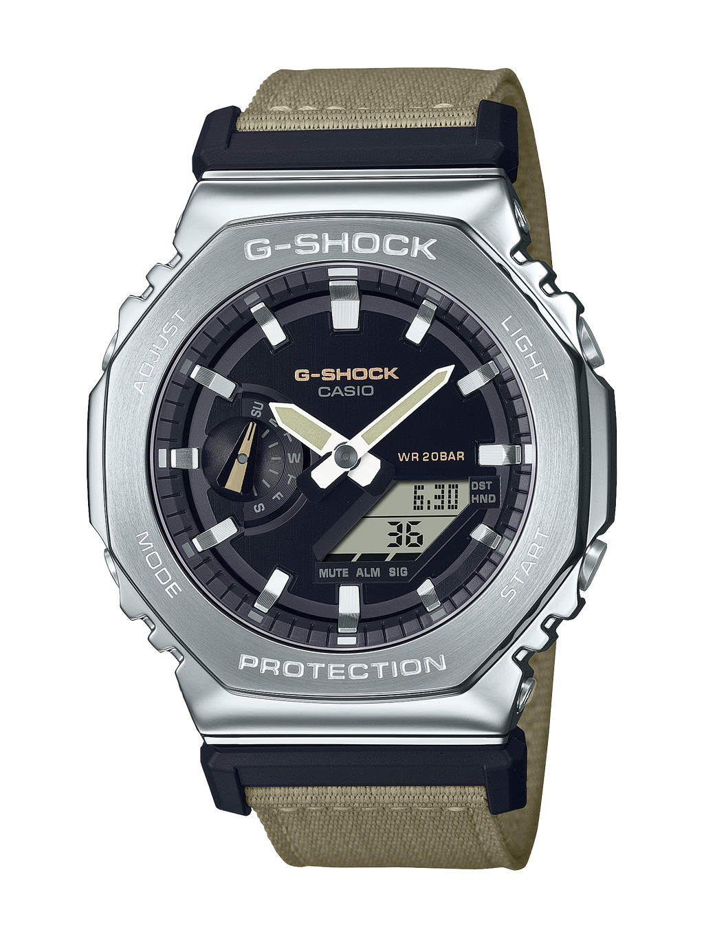 Ces montres innovantes reprennent la forme octogonale emblématique et le design métallique de la ligne GM-2100 et l'associent à un bracelet en tissu décontracté dans une couleur utilitaire qui s'accorde avec n'importe quelle tenue.