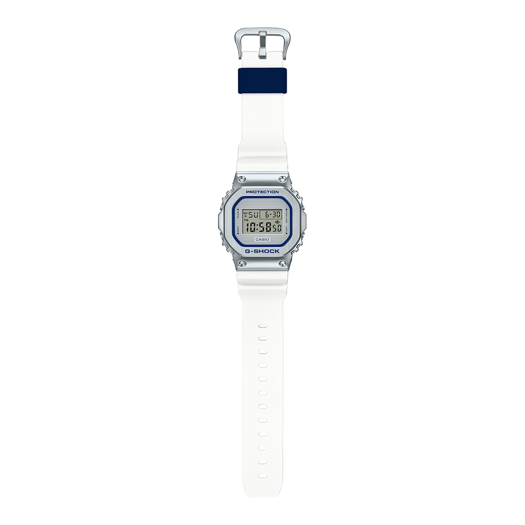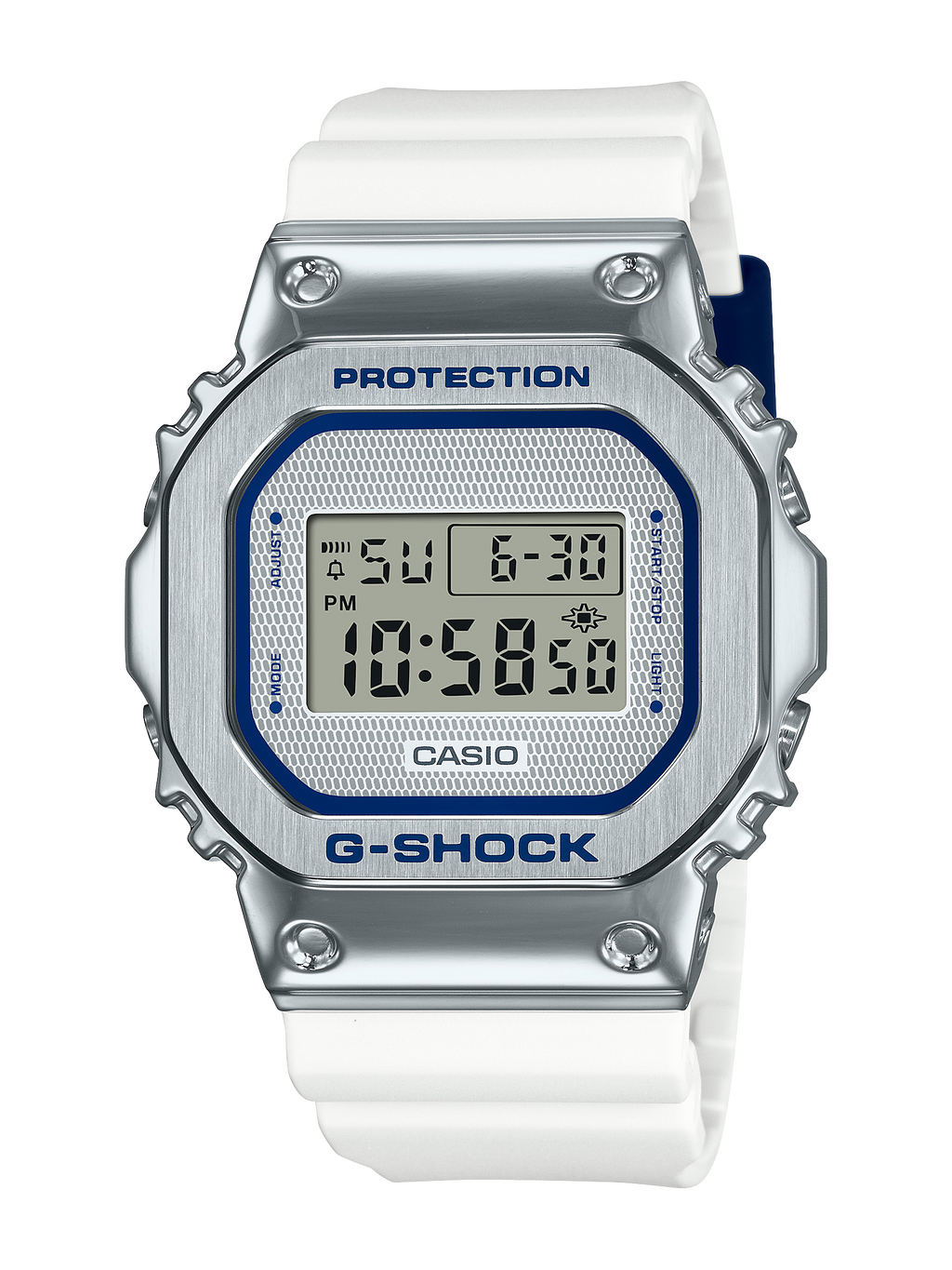 Le G-SHOCK GM-5600 et son compagnon compact, le GM-S5600, disposent d'une lunette en métal de luxe associée à une bande blanche et des touches de bleu marine. Nous ramenons la texture du bracelet en tissu de la paire originale en impression de verre sur les cadrans de la montre pour un design simple et épuré prêt à vous accompagner partout où votre amour vous emmène.
