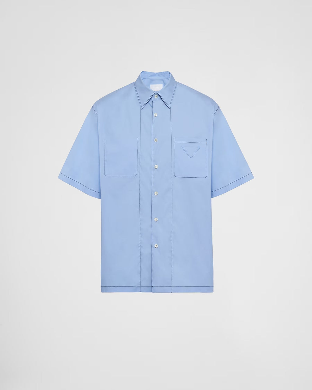 Prada - Chemise à manches courtes en coton stretch Bleu Ciel