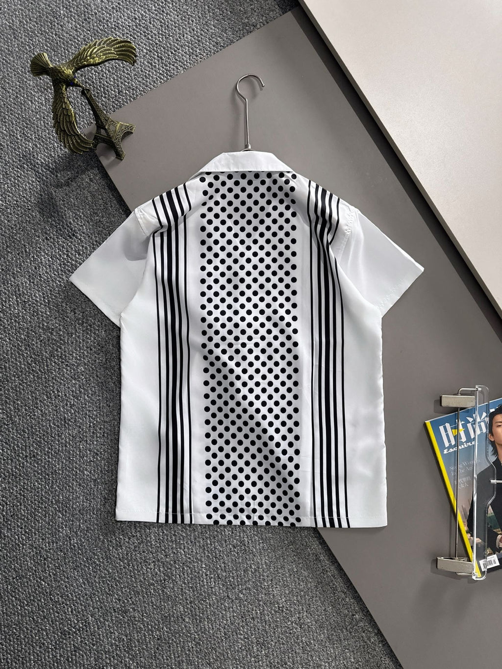 Prada - Chemise en soie Prada à Motif Bicolore Blanc