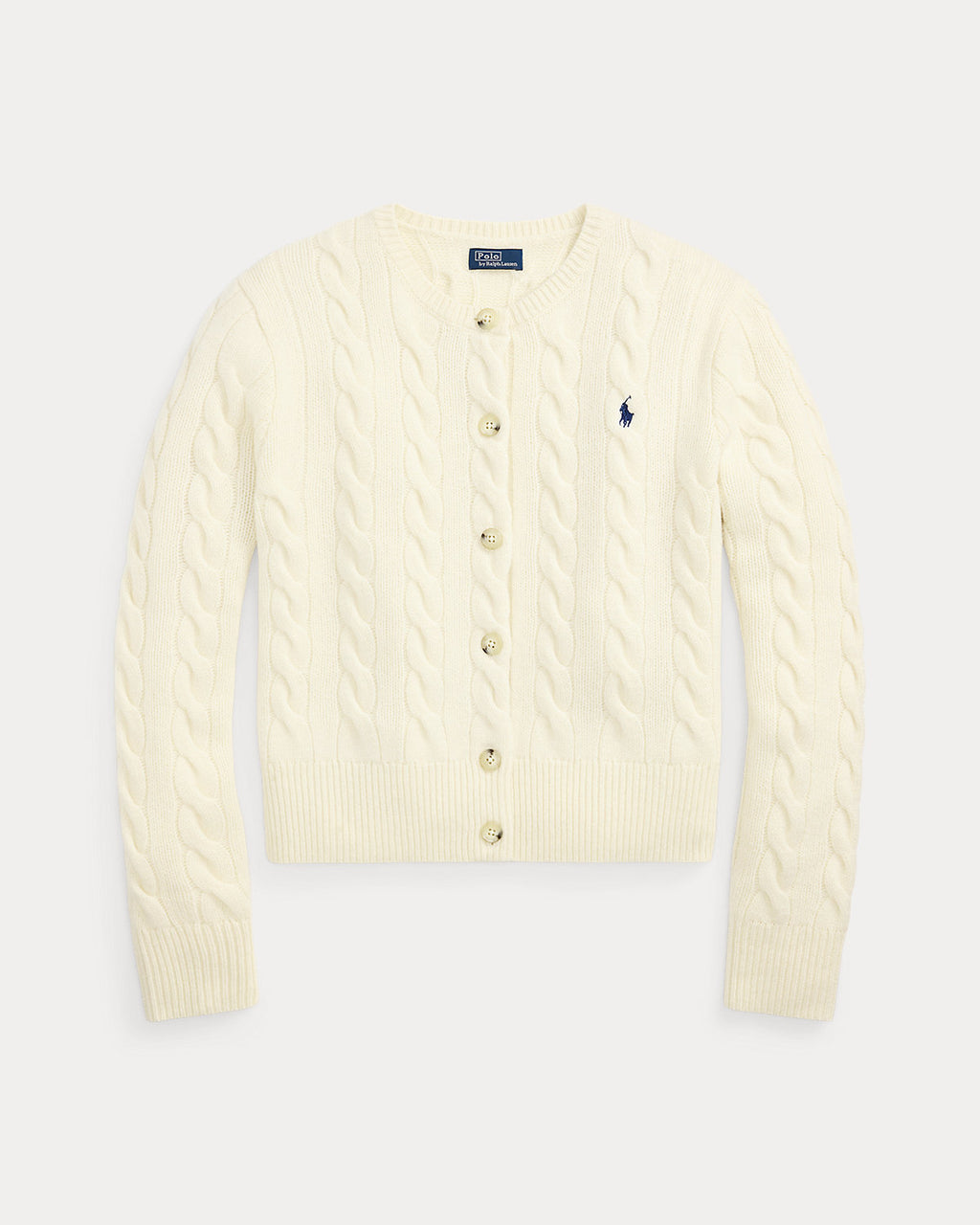 Ralph Lauren - Cardigan torsadé en laine et cachemire Crème authentique