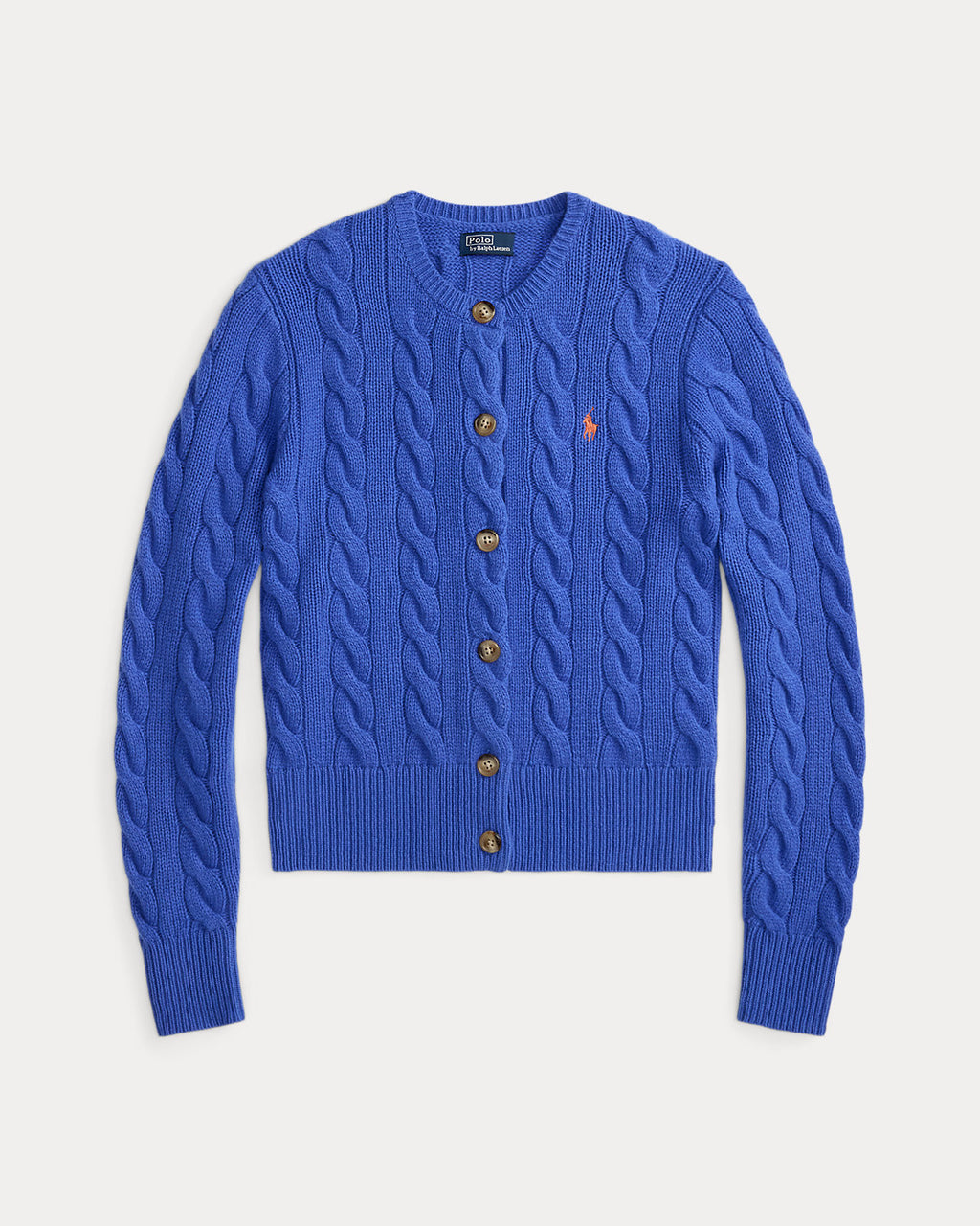 Ralph Lauren - Cardigan torsadé en laine et cachemire Bleu Lapis