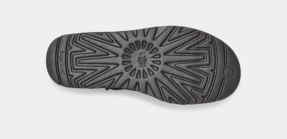 Interprétation moderne de l’une de nos icônes, l’Ultra Mini atteint de nouveaux sommets avec son plateau de 5 cm qui allonge la jambe. Avec son look plus audacieux que jamais, elle est confectionnée dans le même daim raffiné que l’originale et s’accompagne de notre laine mélangée UGGplush™ pour une douceur unique. La semelle extérieure de ce produit est soit une semelle extérieure SugarSole™, un composé responsable utilisant de la mousse de canne à sucre qui nous permet de réduire la dépendance aux combustibles fossiles en remplaçant l’éthylène à base de pétrole, soit une semelle extérieure Treadlite by UGG™.