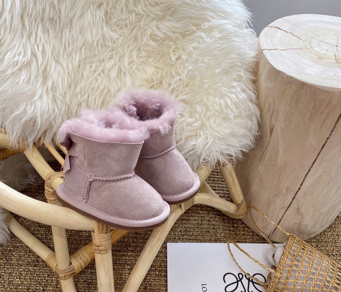 Version miniature de notre botte Classic, la Jesse Bow est confectionnée en daim doux avec un joli ruban en satin et une doublure en laine naturelle moelleuse pour préserver la chaleur et le confort des pieds des tout-petits. Une fermeture par patte auto-agrippante permet de l’enfiler et de l’enlever facilement, tandis que sa semelle en caoutchouc cranté aide les enfants à faire leurs premiers pas. Ce produit a été fabriqué dans une usine qui soutient les femmes dans notre chaîne logistique par le biais de HERproject, une initiative collaborative créant des partenariats avec des marques comme la nôtre pour valoriser et former les femmes sur leur lieu de travail.