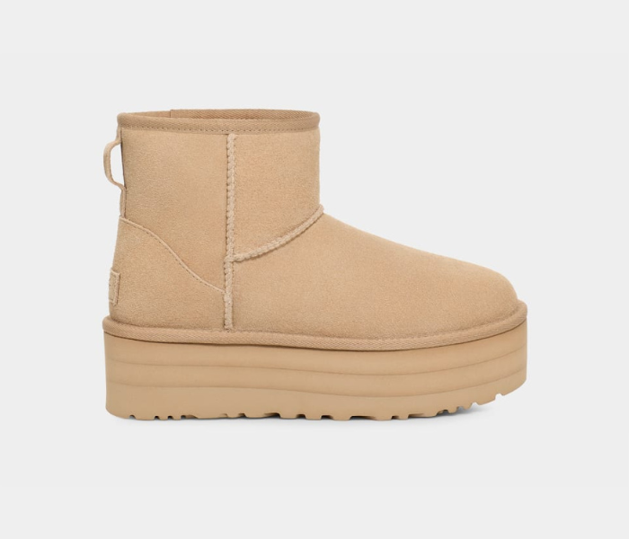 Interprétation moderne de l’une de nos icônes, la Classic Mini atteint de nouveaux sommets avec son plateau de 5 cm qui allonge la jambe. Avec son look plus audacieux que jamais, elle est confectionnée dans le même daim raffiné que l’originale et s’accompagne de notre laine mélangée UGGplush™ pour une douceur unique. La semelle extérieure de ce produit est soit une semelle extérieure SugarSole™, un composé responsable utilisant de la mousse de canne à sucre qui nous permet de réduire la dépendance aux combustibles fossiles en remplaçant l’éthylène à base de pétrole, soit une semelle extérieure Treadlite by UGG™.