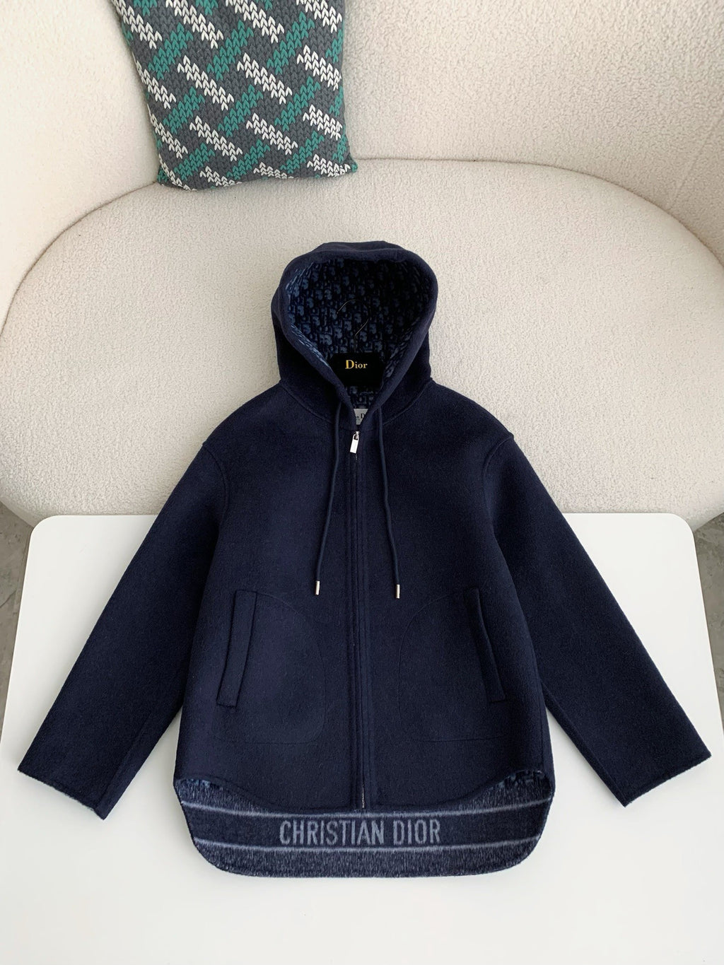 Dior - Veste zip à capuche en laine monogramme Jacquard Bleu Marine F