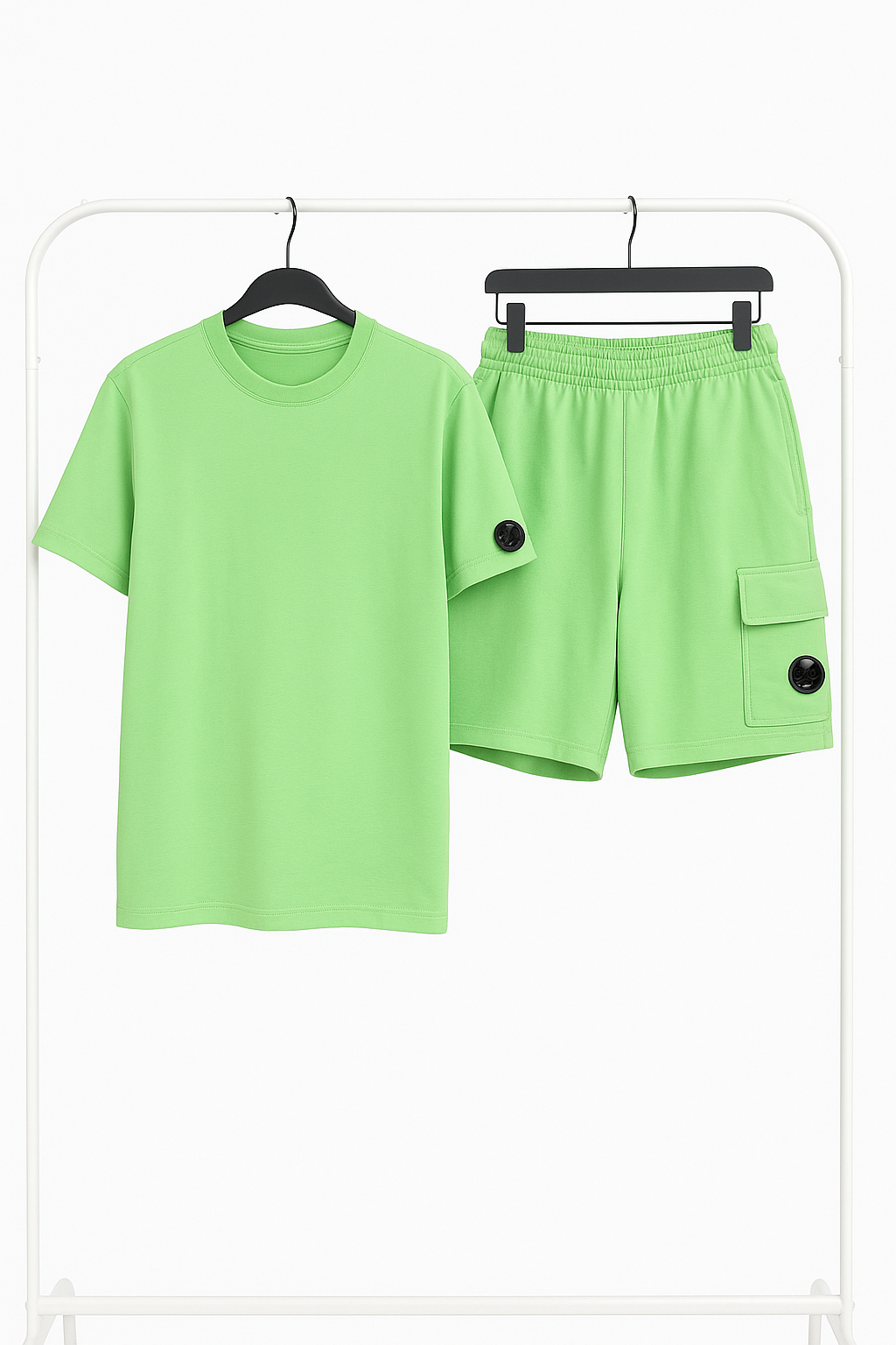 Un ensemble estival alliant confort et style signé C.P. T-shirt et short avec badge iconique – parfait pour un look streetwear haut de gamme.